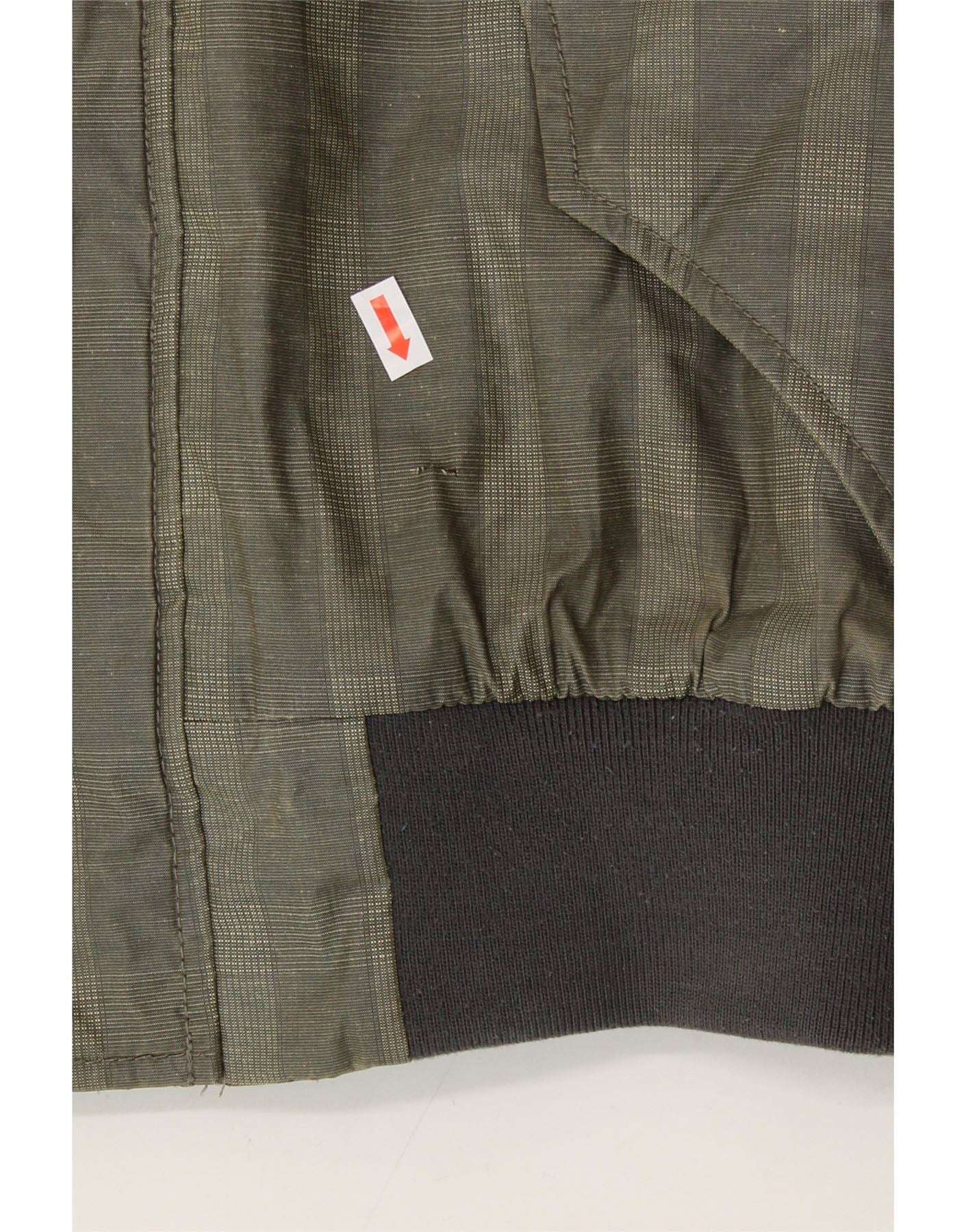 SCHOTT Mens Hooded Padded Bomber Jacket UK 36 Small Green Check Cotton