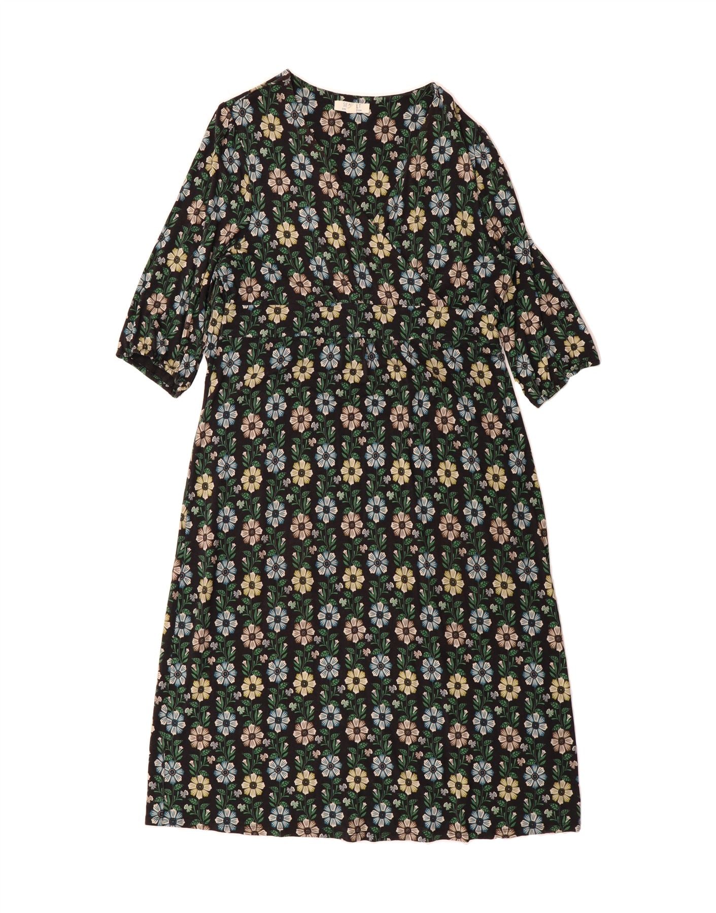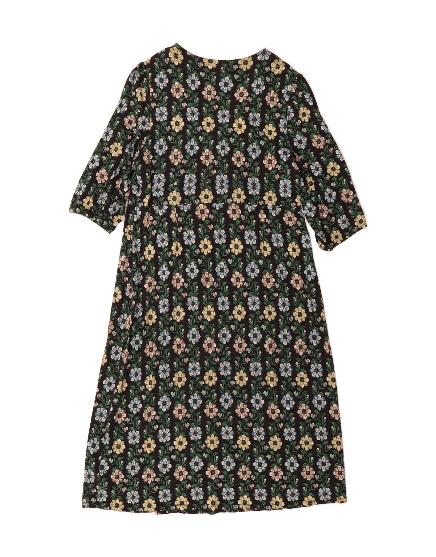 SEASALT Womens 3/4 Sleeve A-Line Dress UK 20 2XL Black Floral Cotton