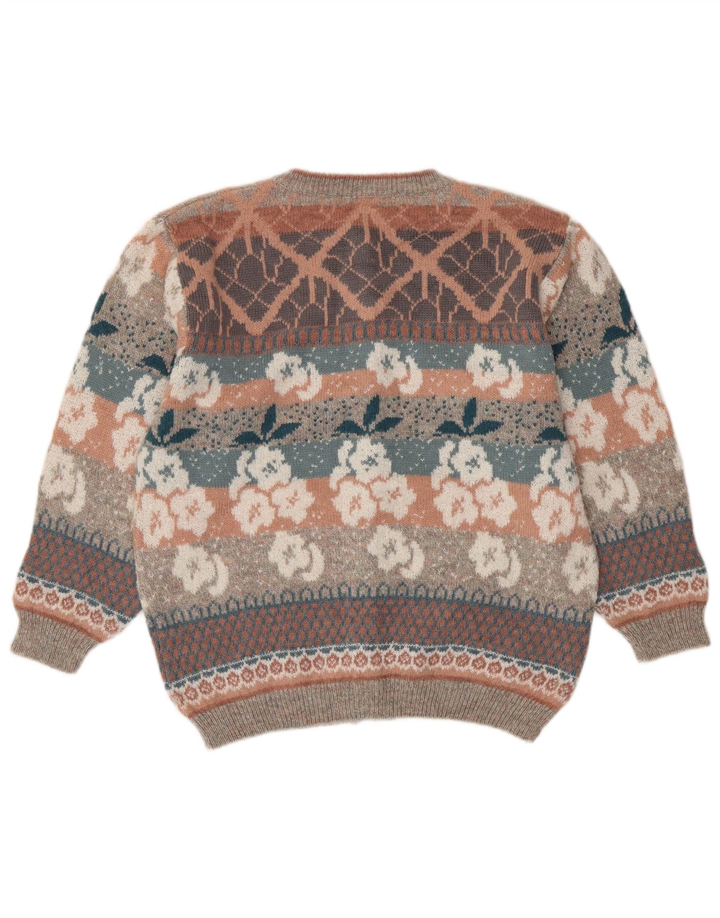 SIMONE Γυναικείο πουλόβερ ζακέτα UK 16 Μεγάλο πολύχρωμο φλοράλ μαλλί