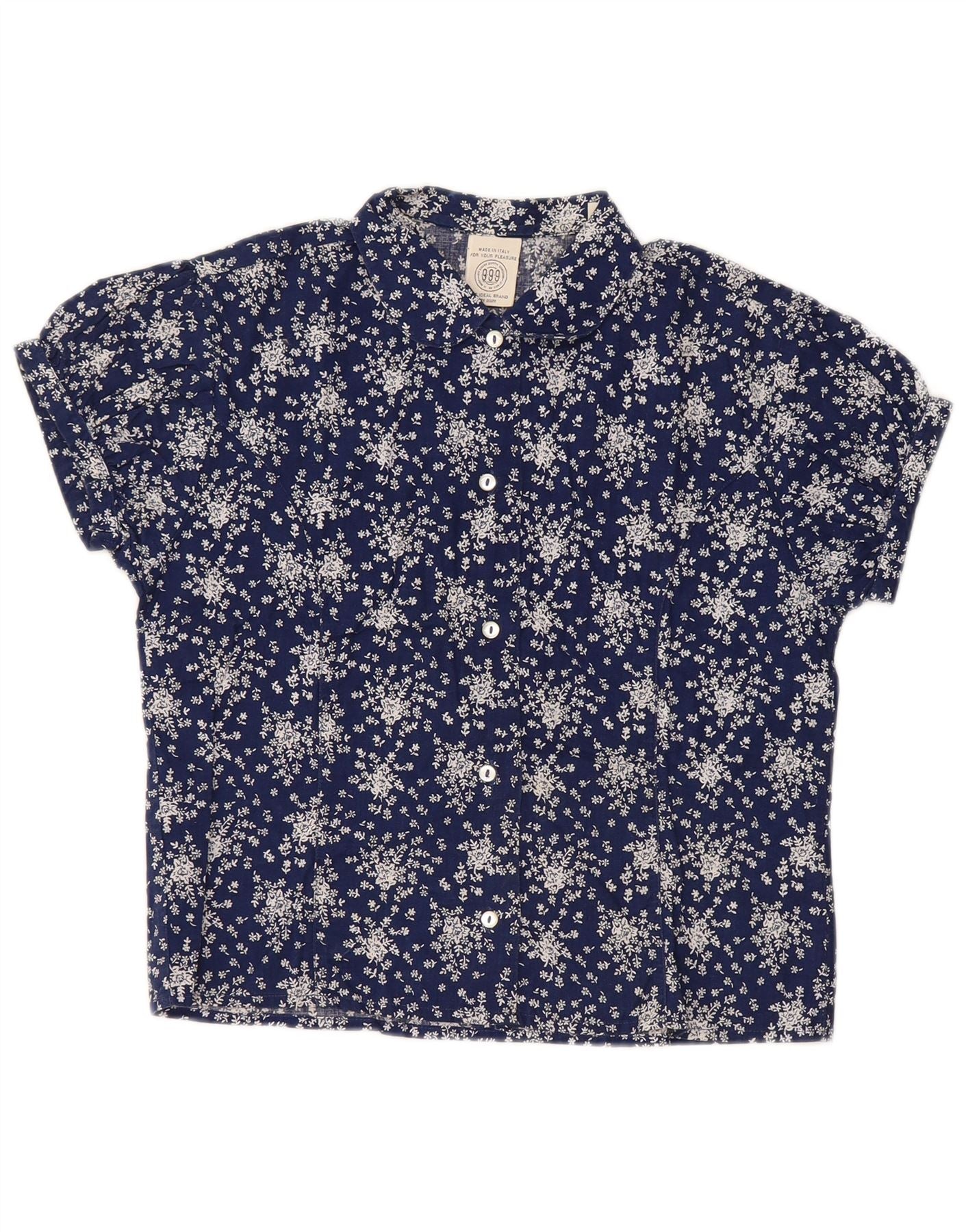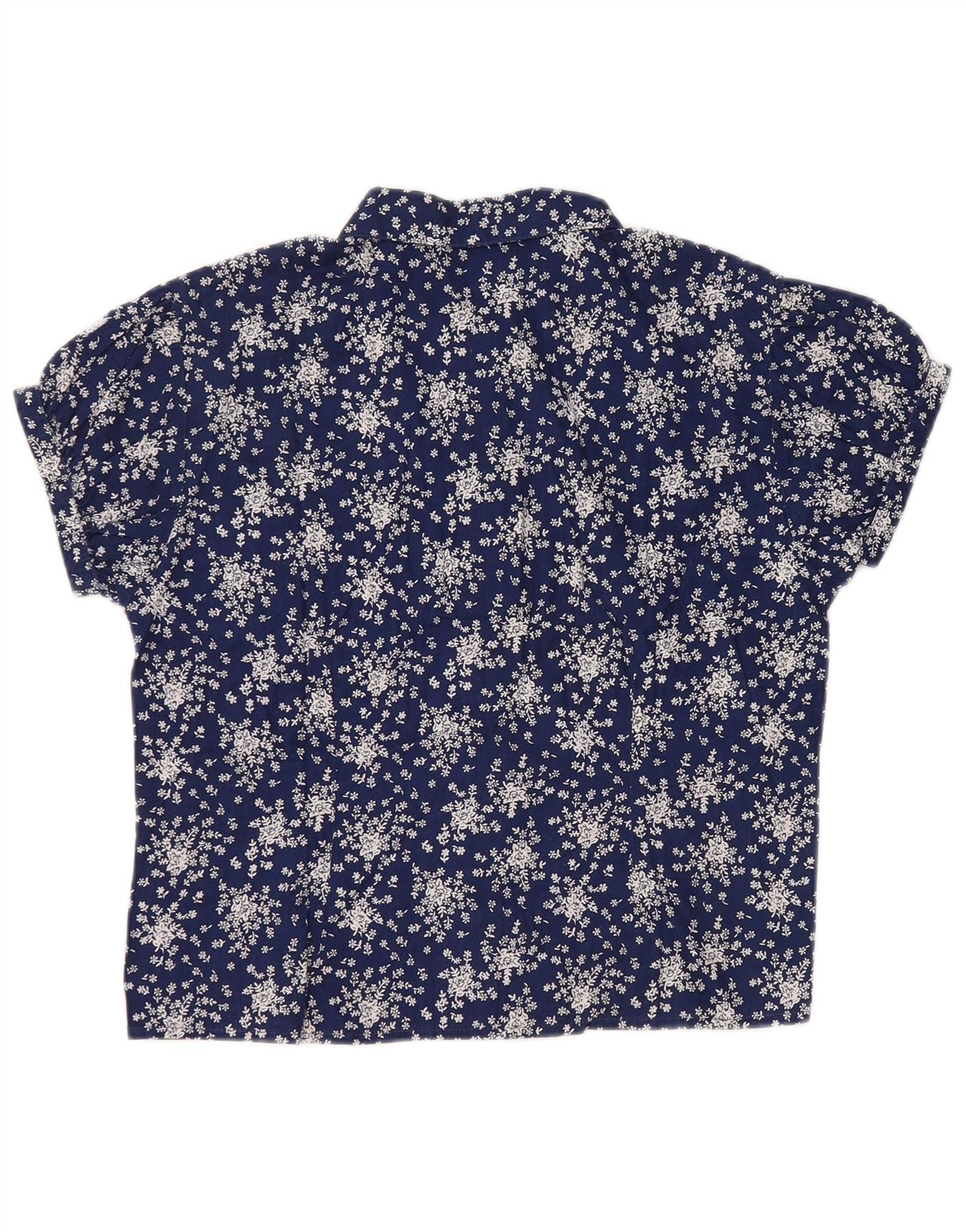 SISLEY Γυναικείο κοντομάνικο πουκάμισο μπλούζα UK 14 Large Navy Blue Floral