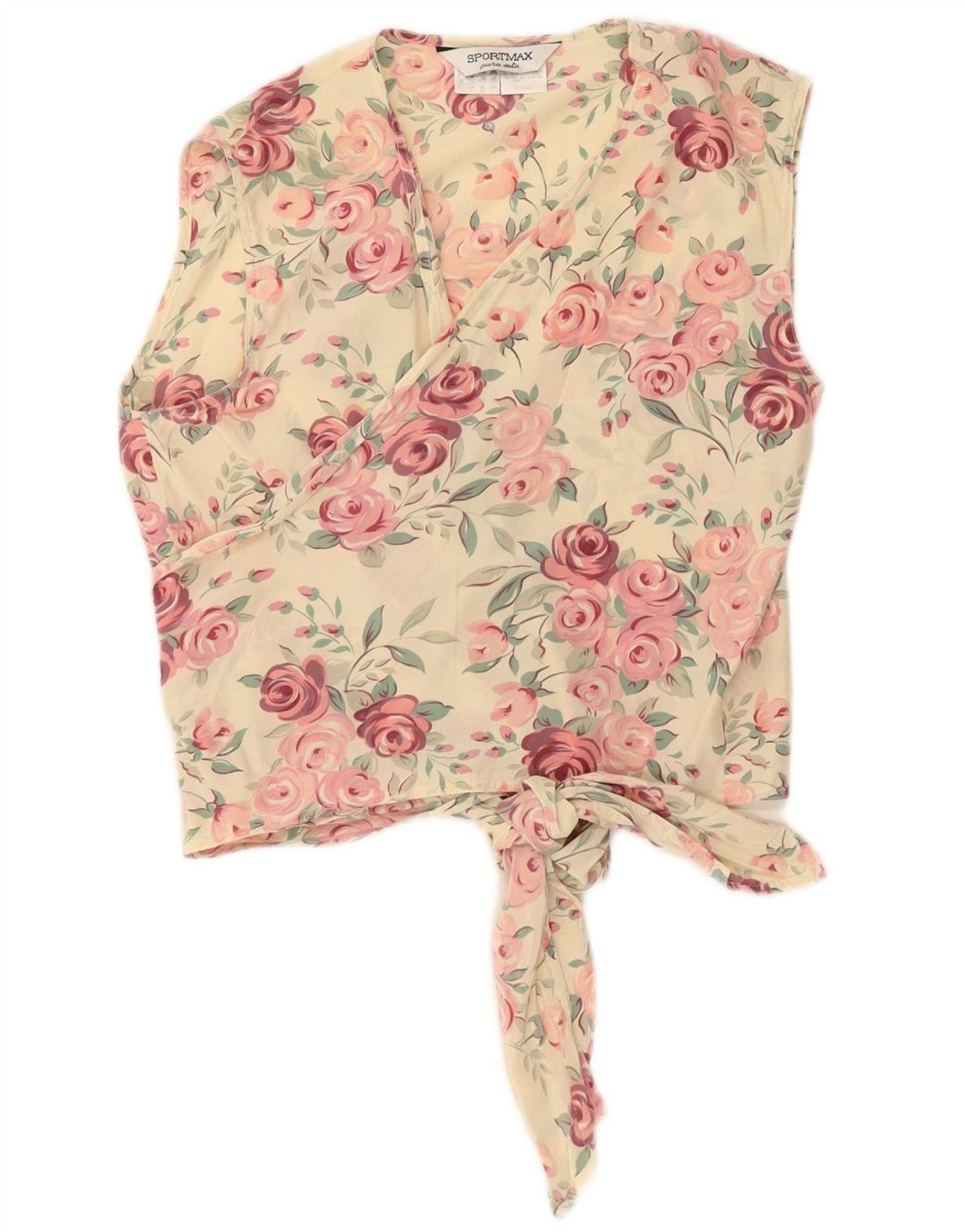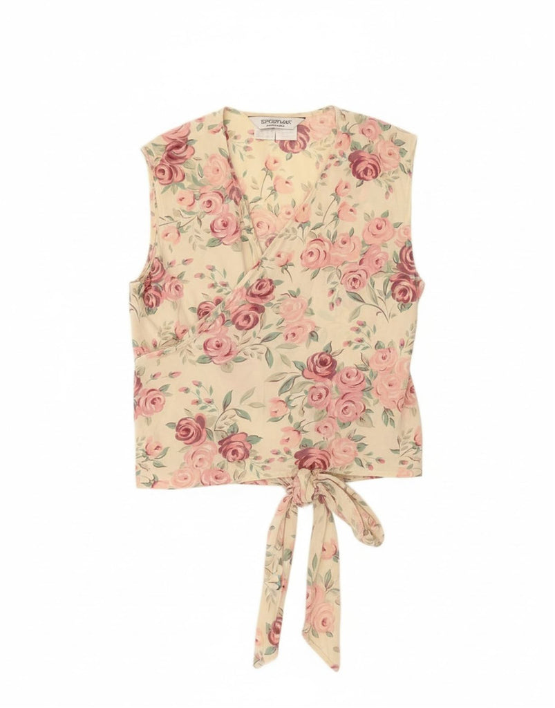 SPORTMAX Womens Sleeveless Wrap Blouse Top UK 14 Medium Off White Floral