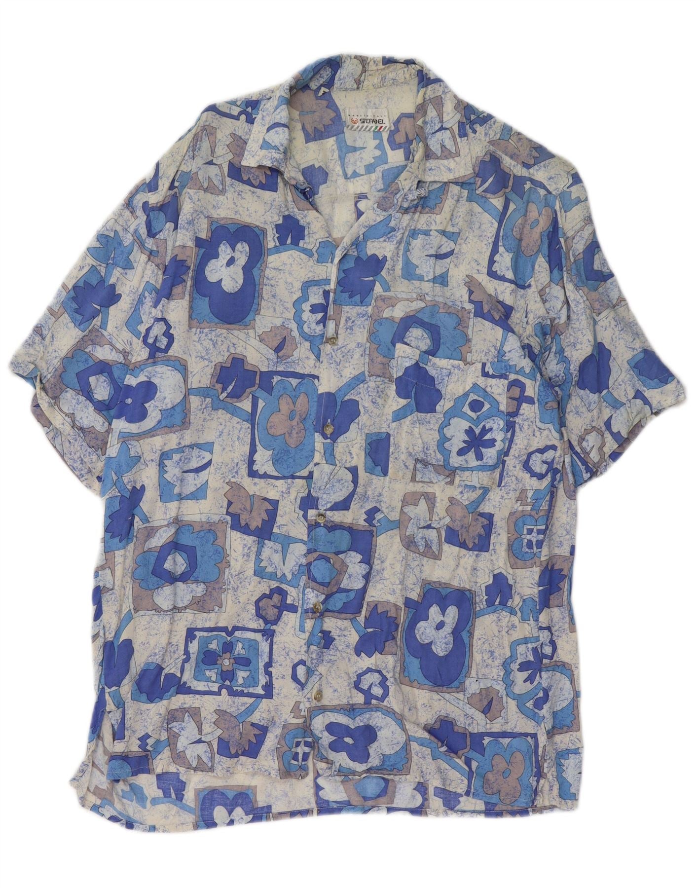 STEFANEL Ανδρικό κοντομάνικο πουκάμισο μεσαίο μπλε συνονθύλευμα βισκόζη