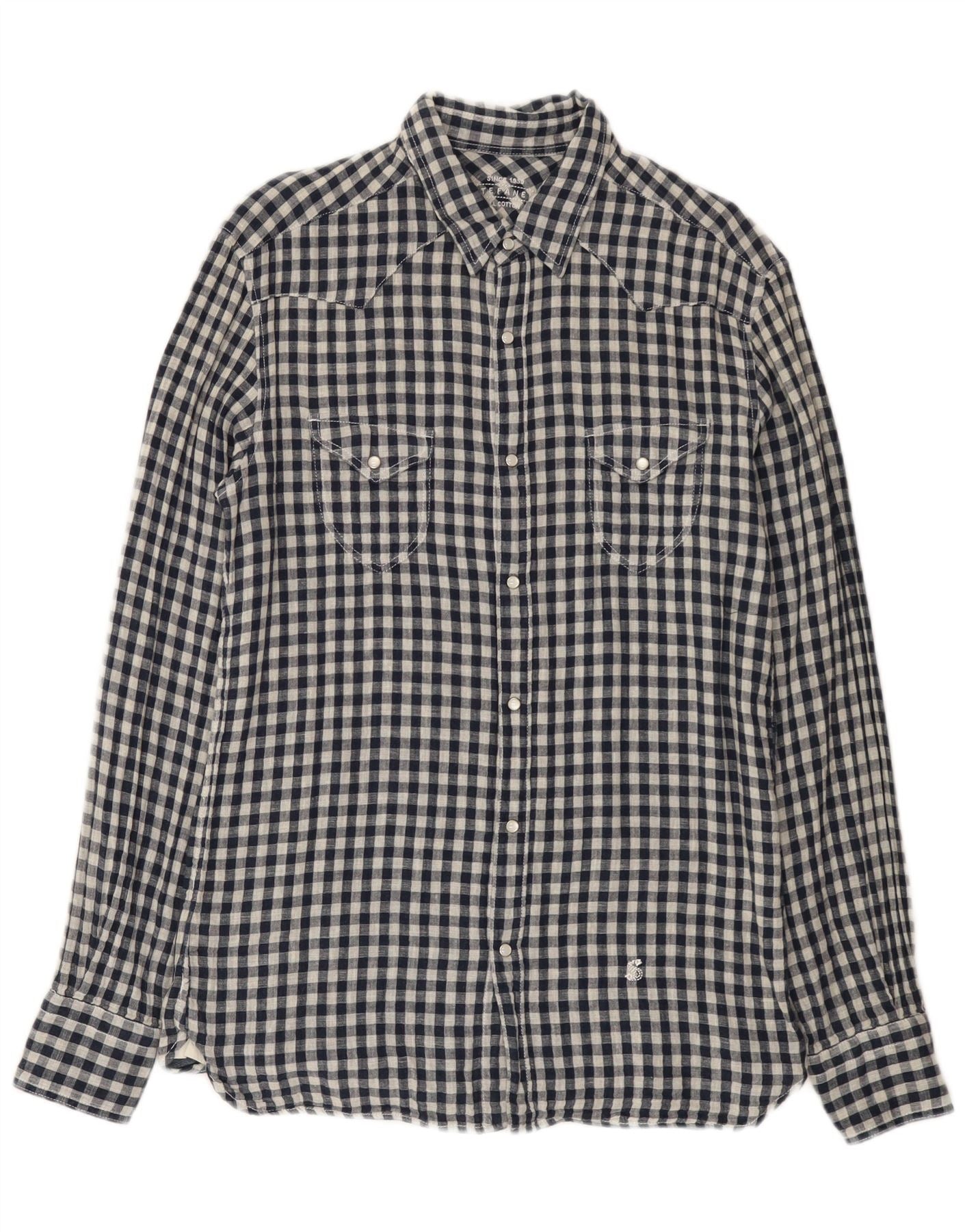 Stefanel Ανδρικό πουκάμισο Western Large Navy Blue Gingham Cotton