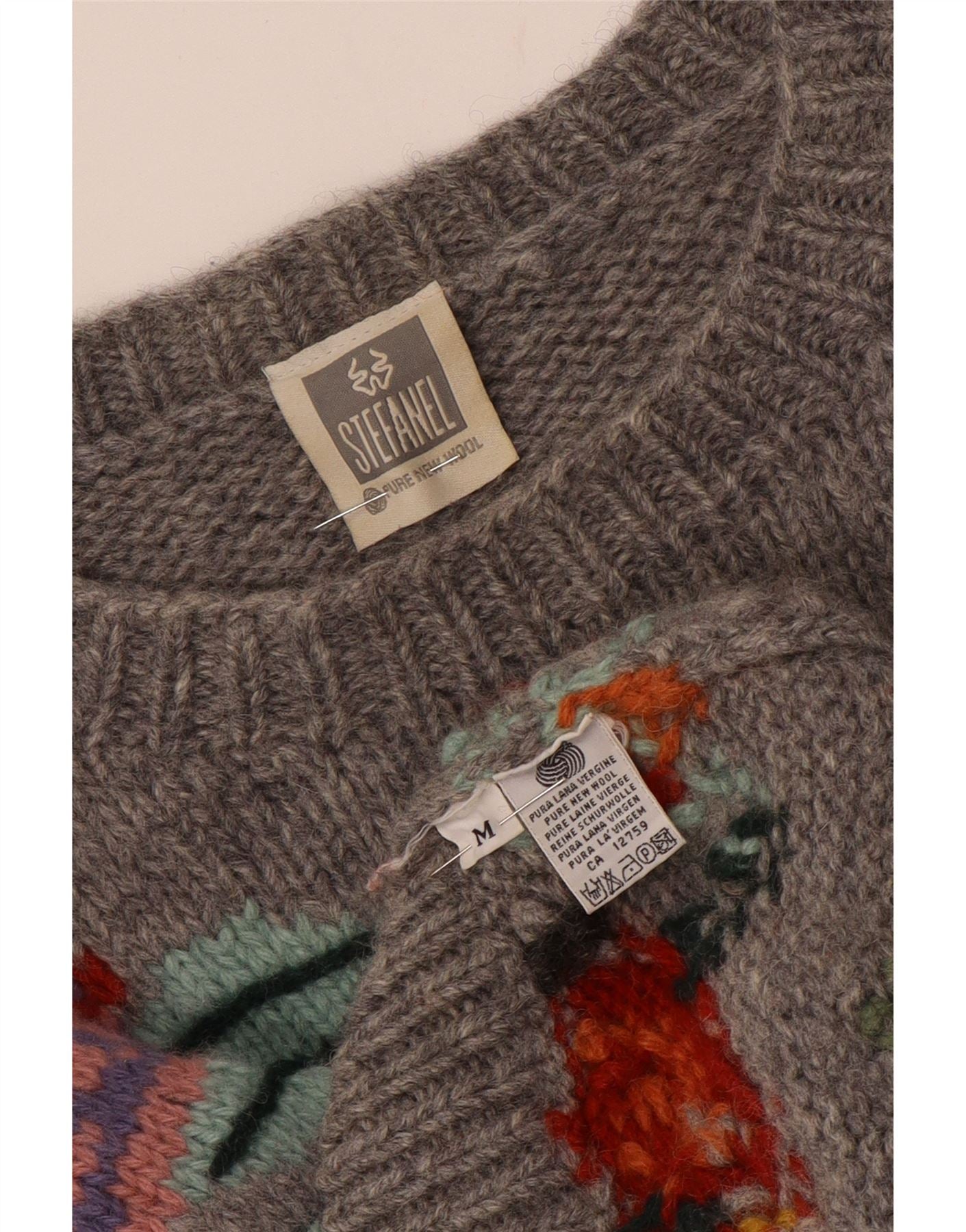 STEFANEL Γυναικείο πουλόβερ με λαιμόκαυστο UK 14 Medium Grey Floral