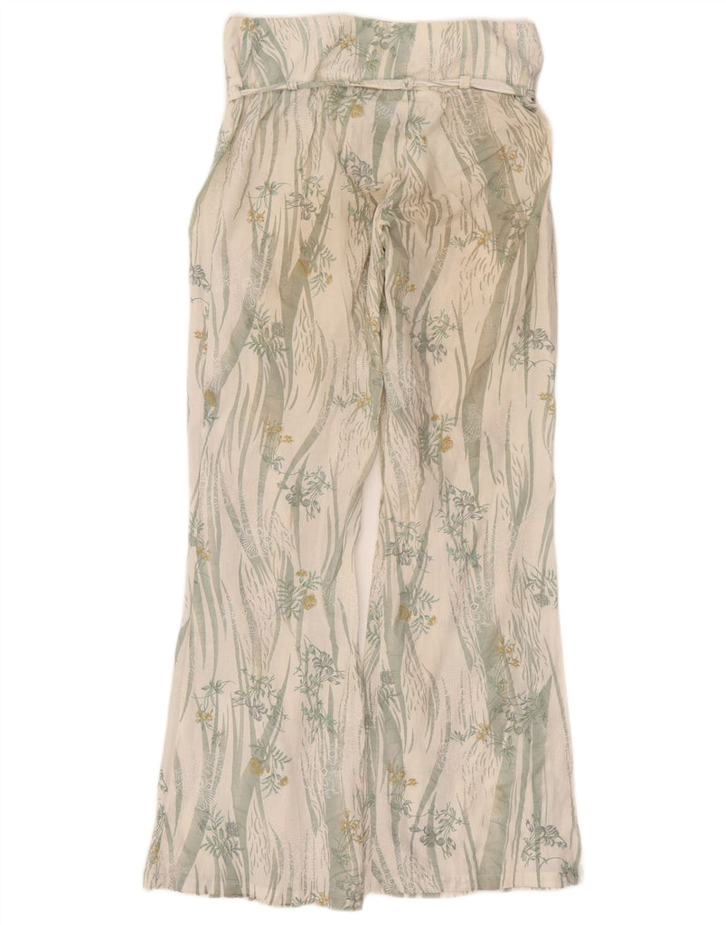 STEFANEL Womens Flare Casual Trousers W28 L29 Off White Floral Cotton