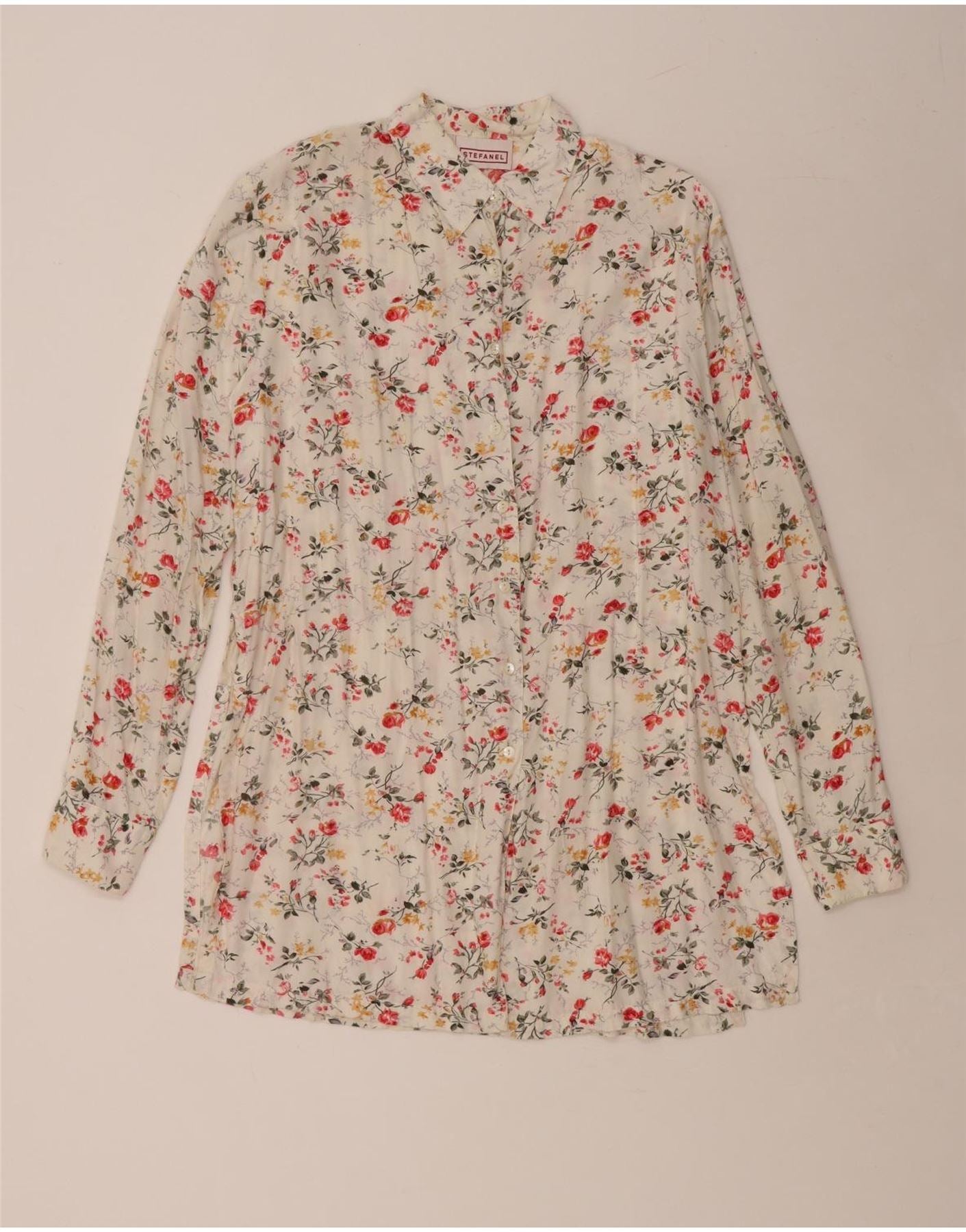 STEFANEL Womens Longline Shirt Blouse UK 16 Large Off White Floral