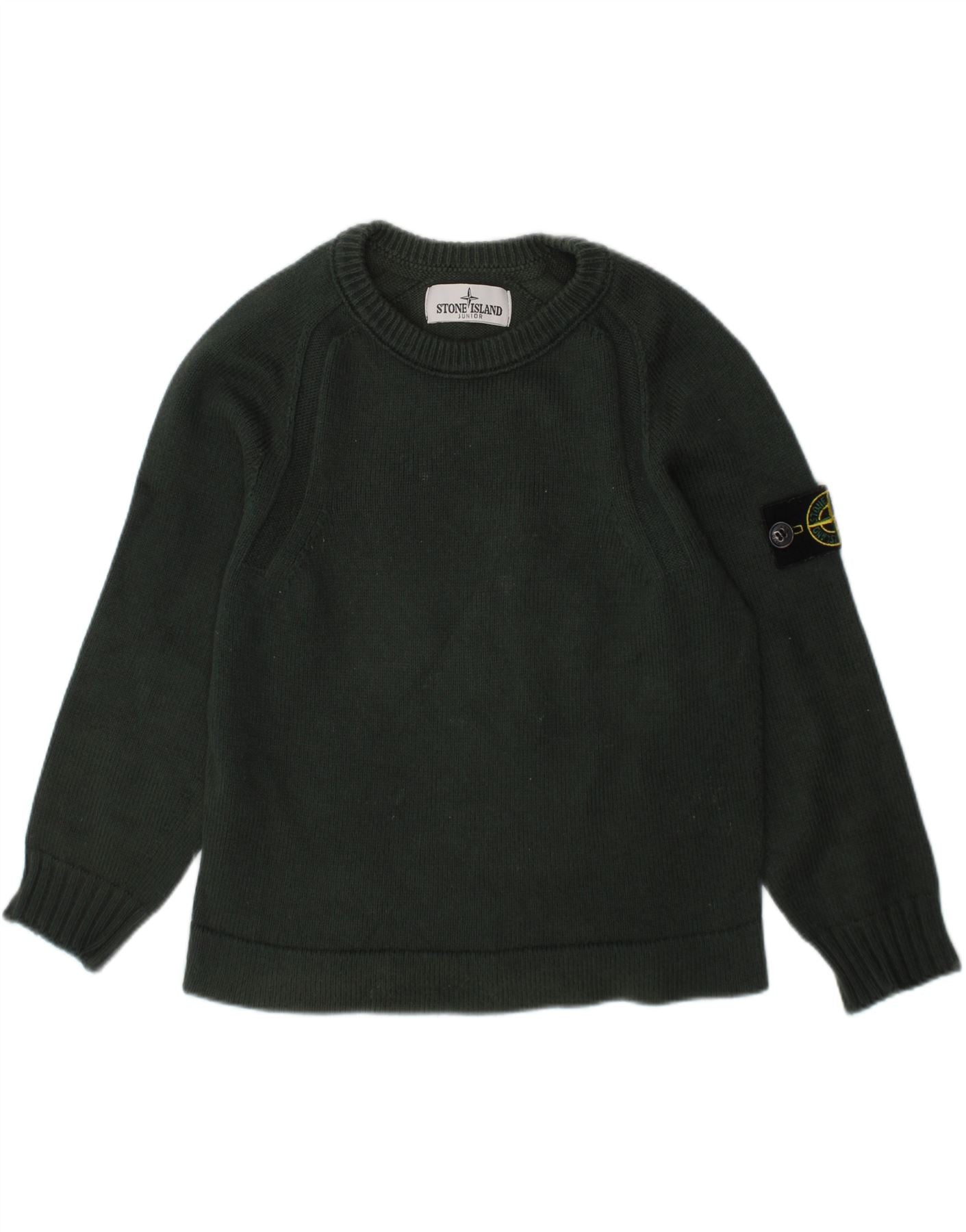 - AI Description: This Stone Island boys’ sweater is crafted from soft green wool knit. The round neckline and long sleeves create a classic shape. A regular fit ensures comfortable wear. The pullover style allows for easy dressing. A logo accent adds subtle brand recognition. This garment is a versatile addition to any young wardrobe.