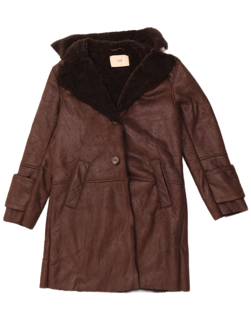 STRADIVARIUS Γυναικείο Oversized παλτό Sherpa UK 6 XS καφέ πολυεστέρας