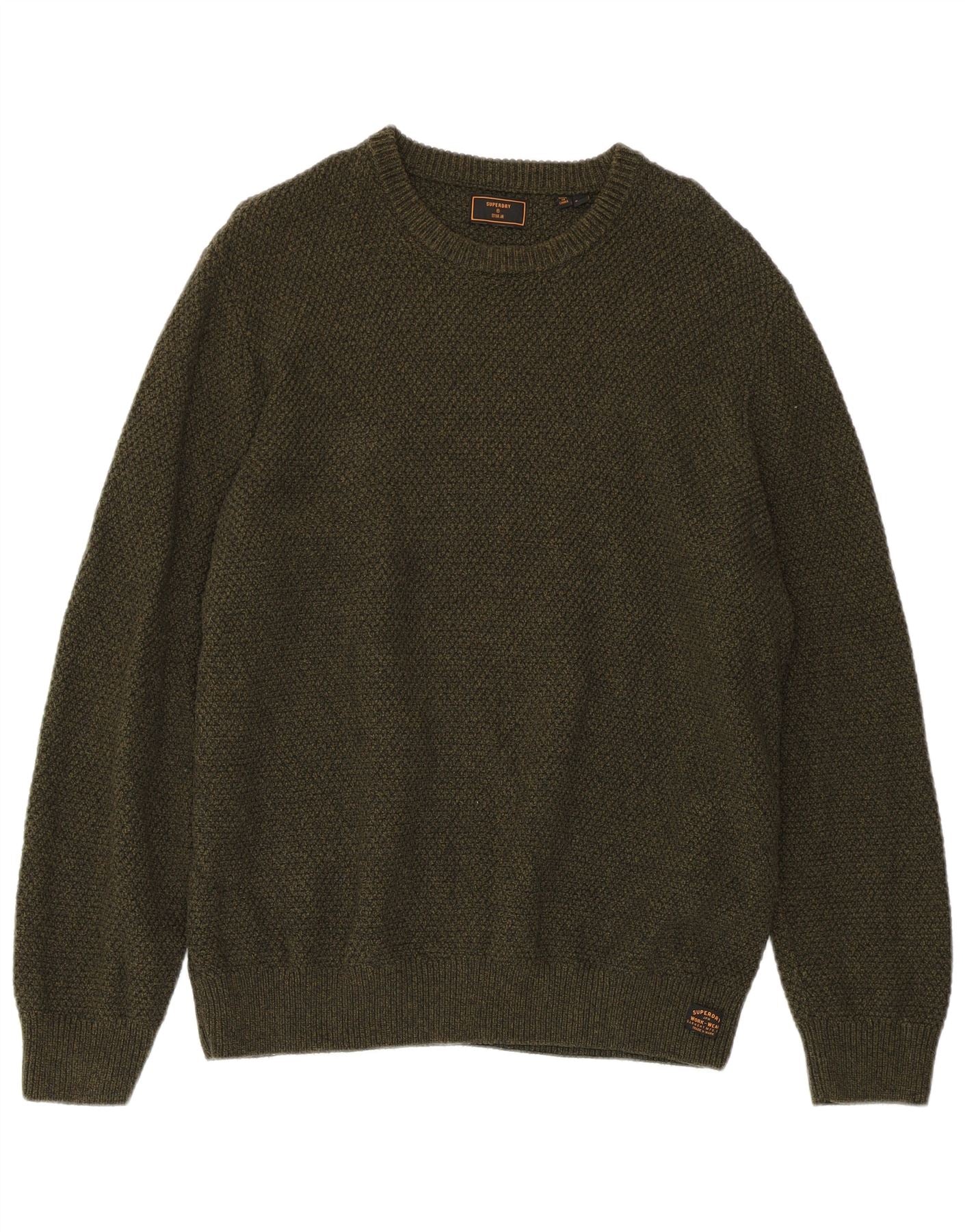 Ανδρικό πουλόβερ με λαιμόκοψη SUPERDRY 2XL Χακί βαμβακερό