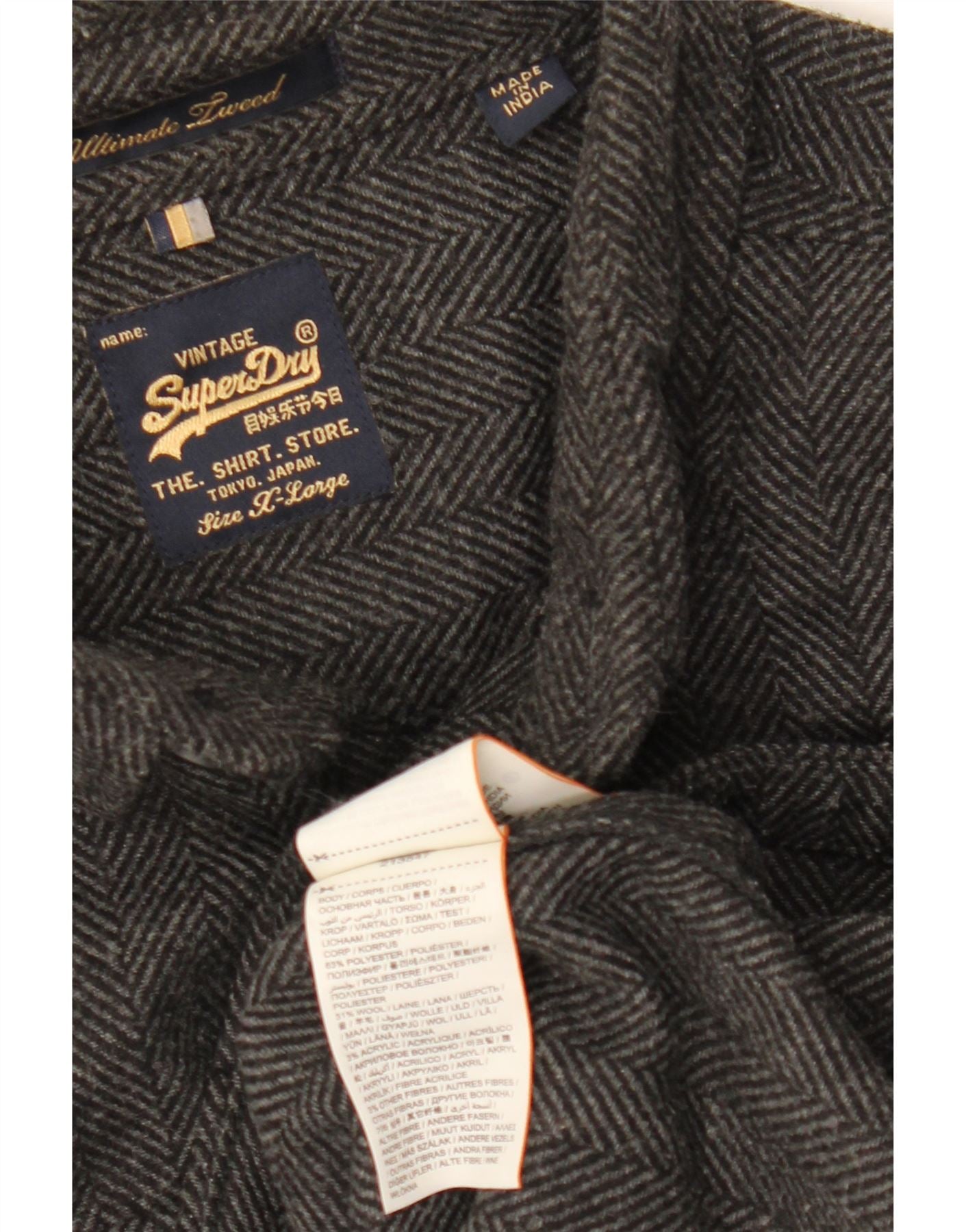 Ανδρικό φανελένιο πουκάμισο SUPERDRY XL Γκρι πολυεστέρας ψαροκόκκαλο