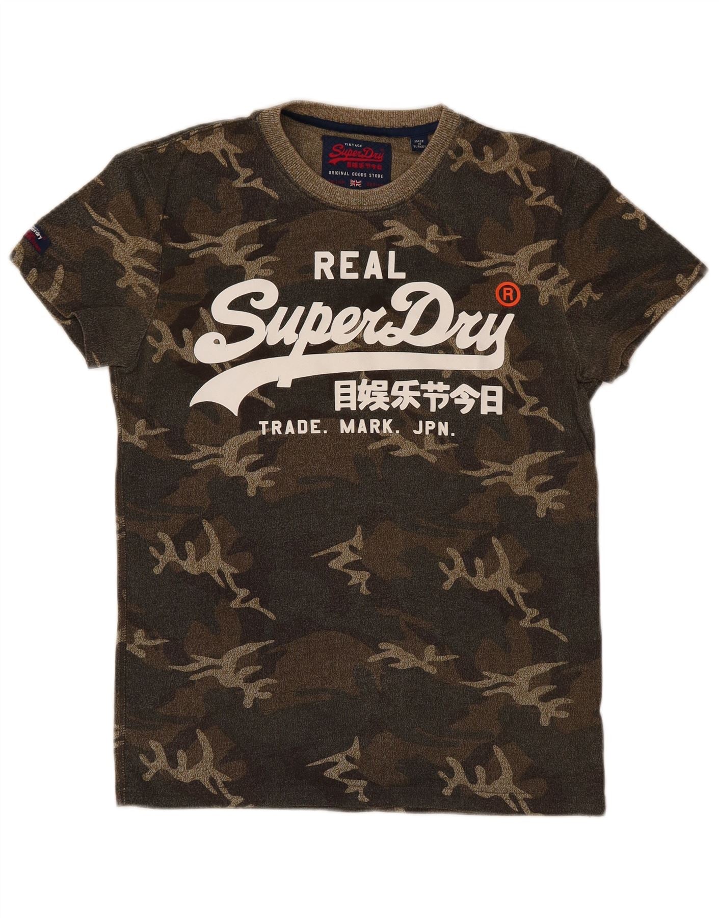 Superdry Ανδρικό γραφικό T-Shirt Top Μικρό πράσινο καμουφλάζ βαμβακερό