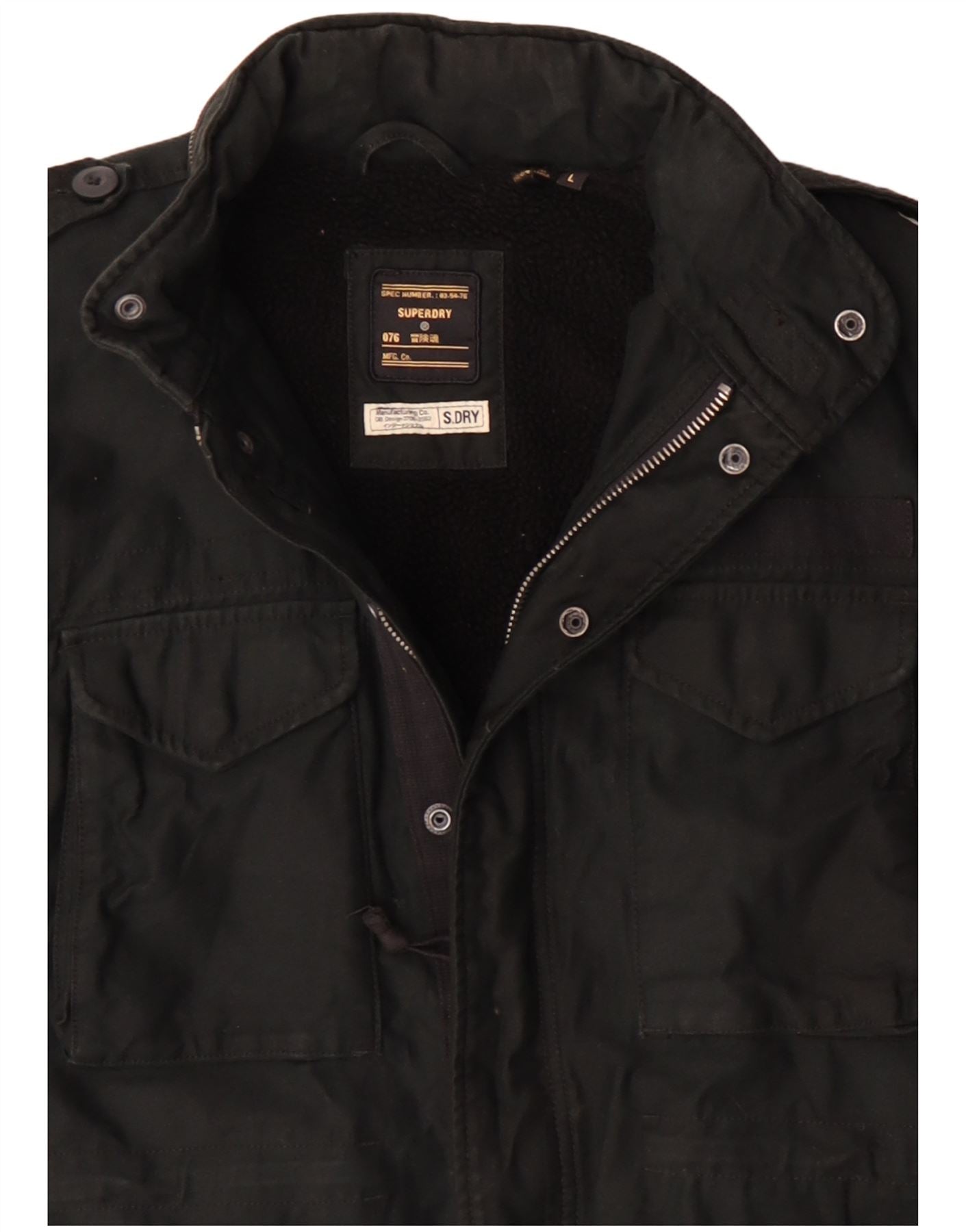 Ανδρικό στρατιωτικό μπουφάν με κουκούλα Superdry UK 40 μεγάλο μαύρο πολυεστέρα