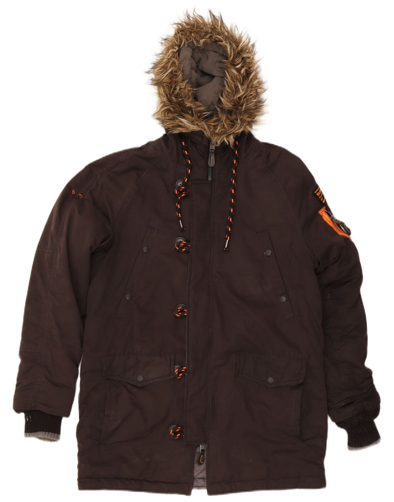 SUPERDRY Mens Hooded Parka Jacket UK 40 Large Black Polyester