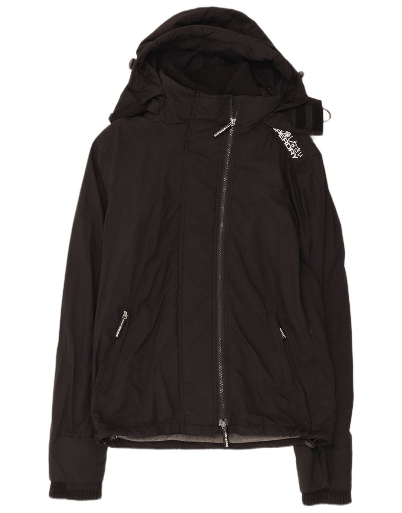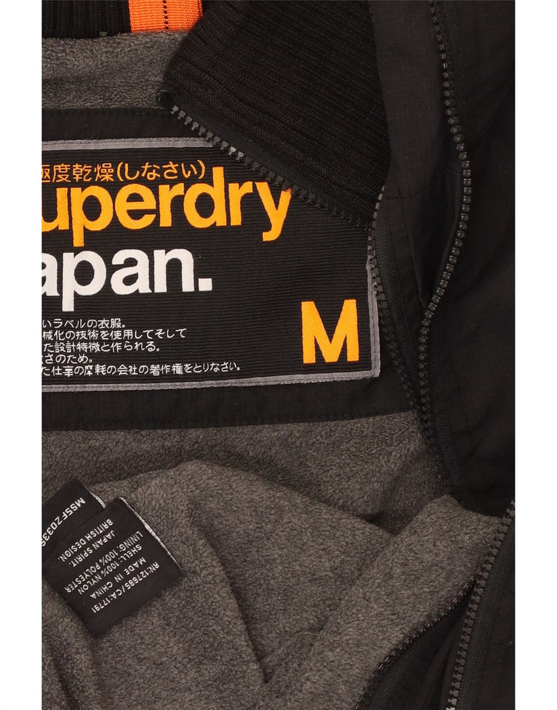 SUPERDRY Mens Hooded Windbreaker Jacket UK 38 Medium Black Nylon