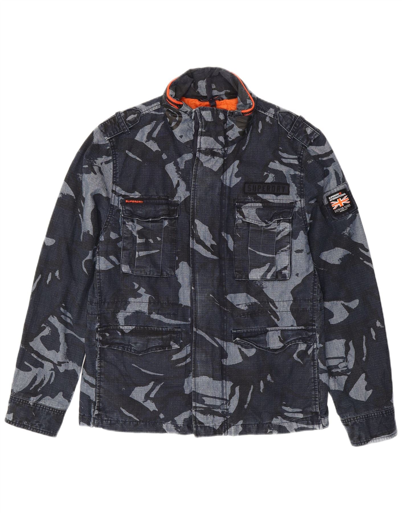 Ανδρικό στρατιωτικό μπουφάν SUPERDRY UK 40 Large Navy Blue από βαμβακερό καμουφλάζ