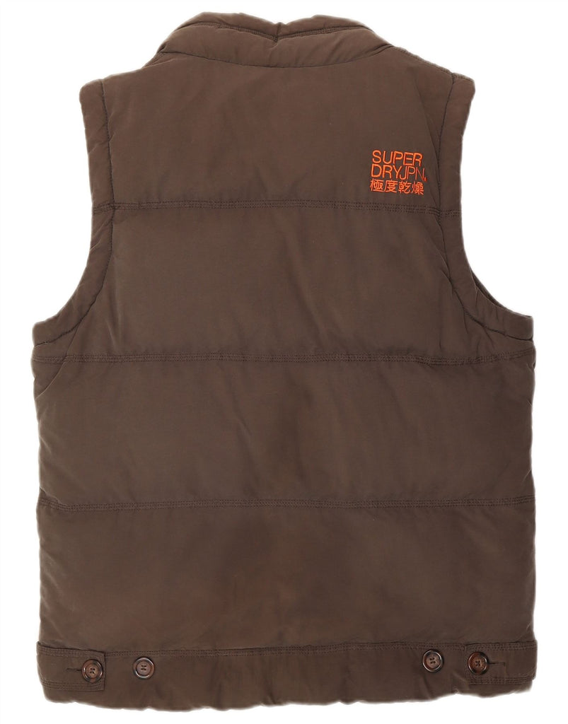 - AI Description: This Superdry mens waistcoat is crafted from a durable woven fabric, featuring a distinctive quilted finish. Presented in a versatile brown, it boasts a classic collared neckline and a sleeveless design. A full zip closure ensures practicality, complemented by functional pockets. The padded construction offers warmth and comfort. A subtle button accent adds a refined touch to this regular fit garment, perfect for layering.
