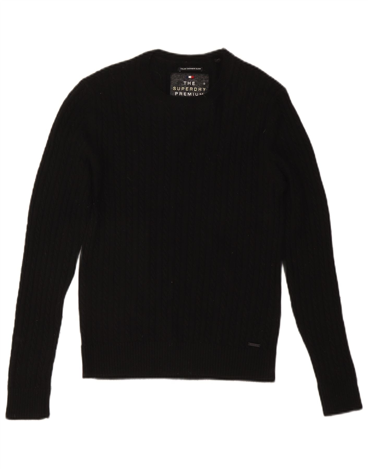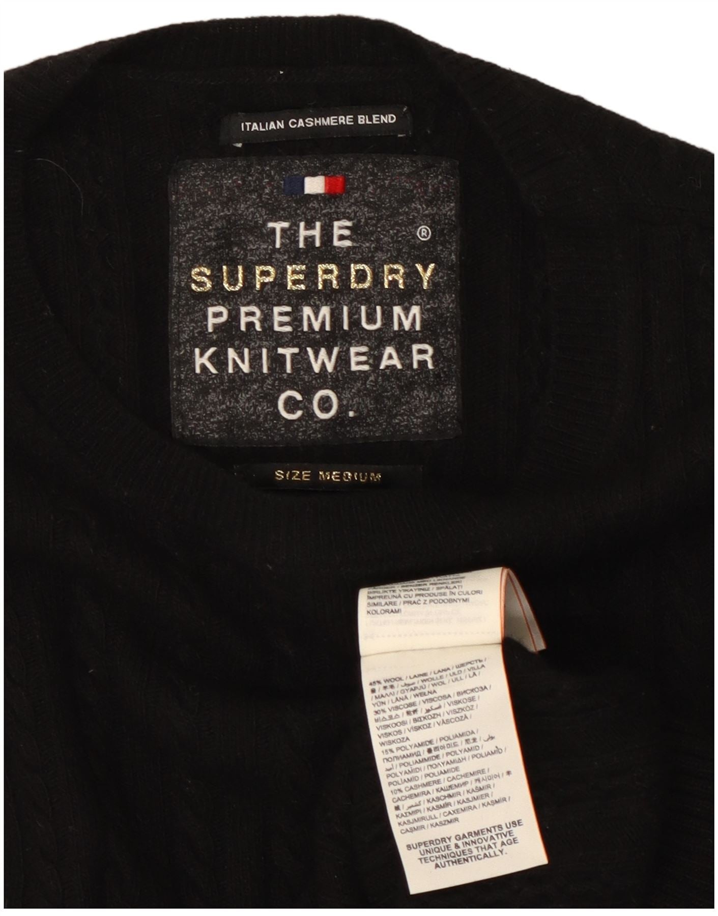 Γυναικείο πουλόβερ με λαιμόκοψη SUPERDRY UK 12 μεσαίο μαύρο μαλλί