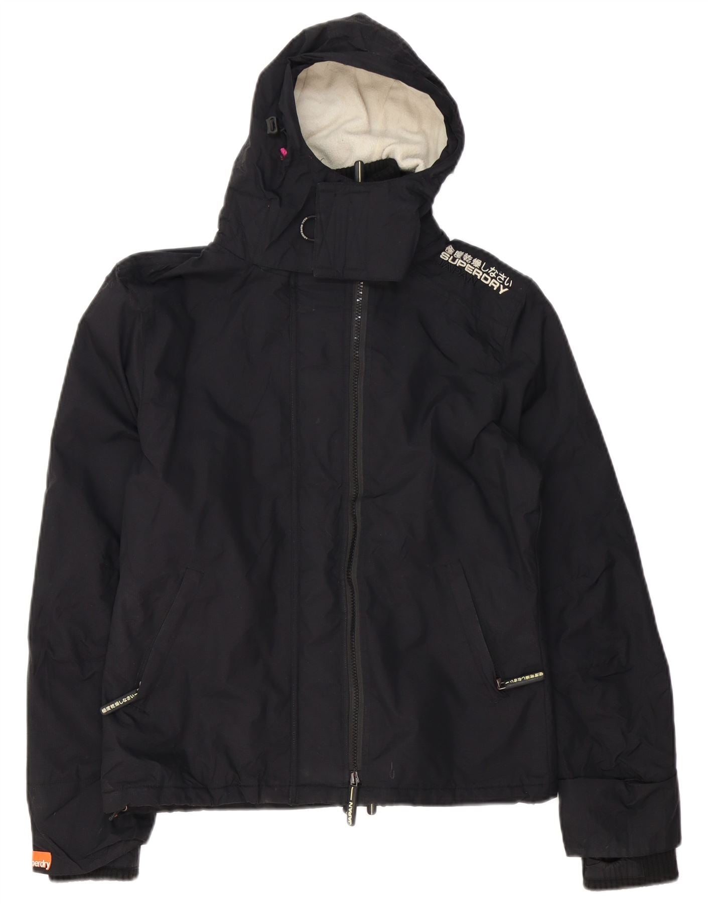 Superdry Γυναικείο τζάκετ με κουκούλα με γραφικά αντιανεμικό UK 16 μεγάλο μαύρο νάιλον