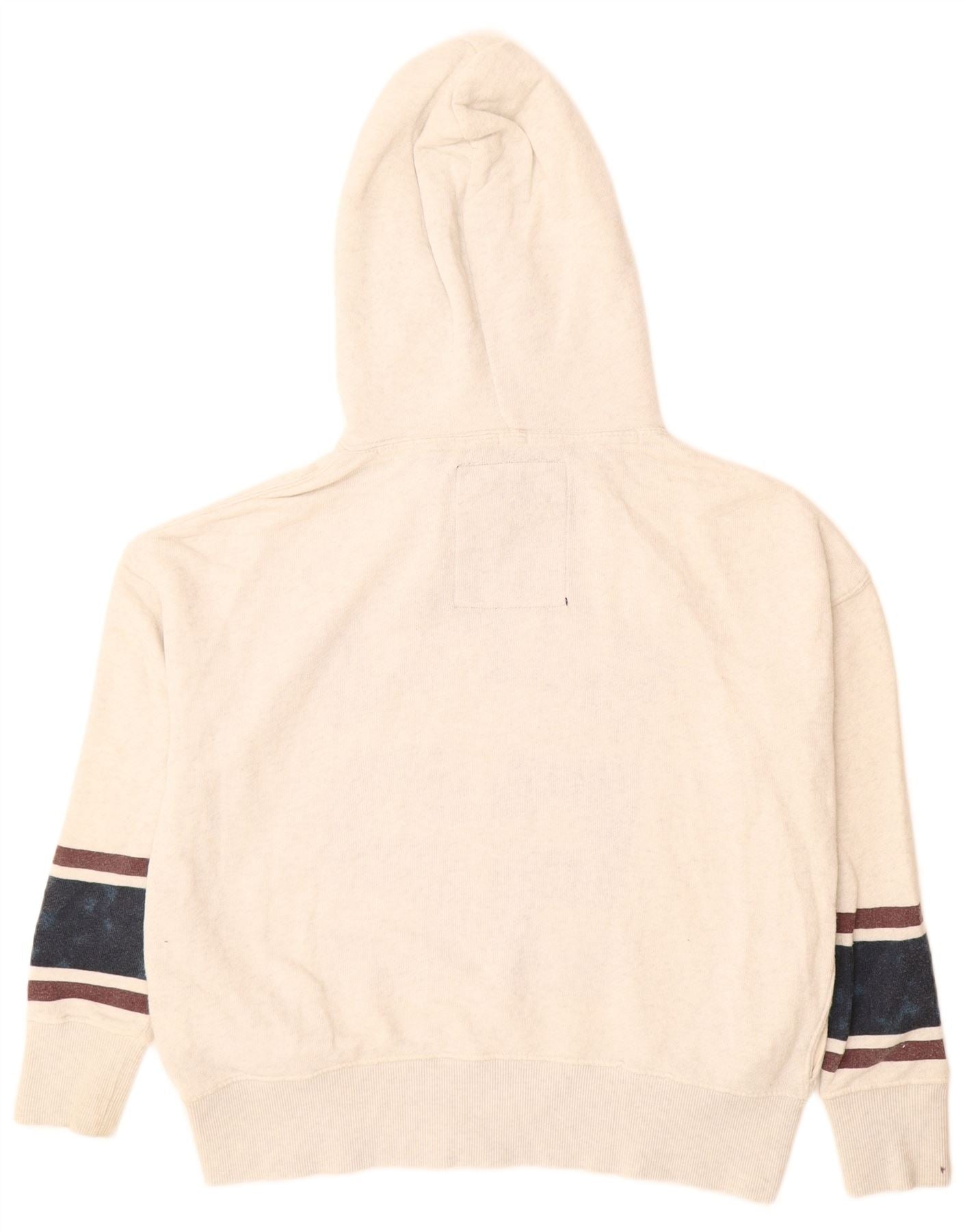 SUPERDRY Womens Graphic Hoodie Jumper UK 14 Medium Off White Cotton