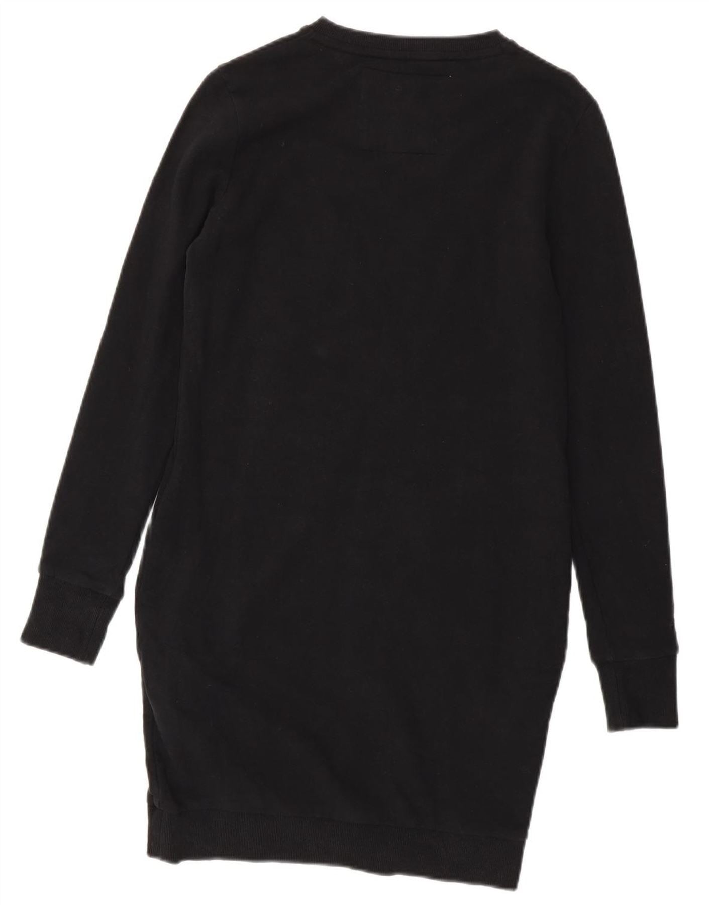 Γυναικείο γραφικό φούτερ SUPERDRY φόρεμα UK 12 μεσαίο μαύρο βαμβακερό