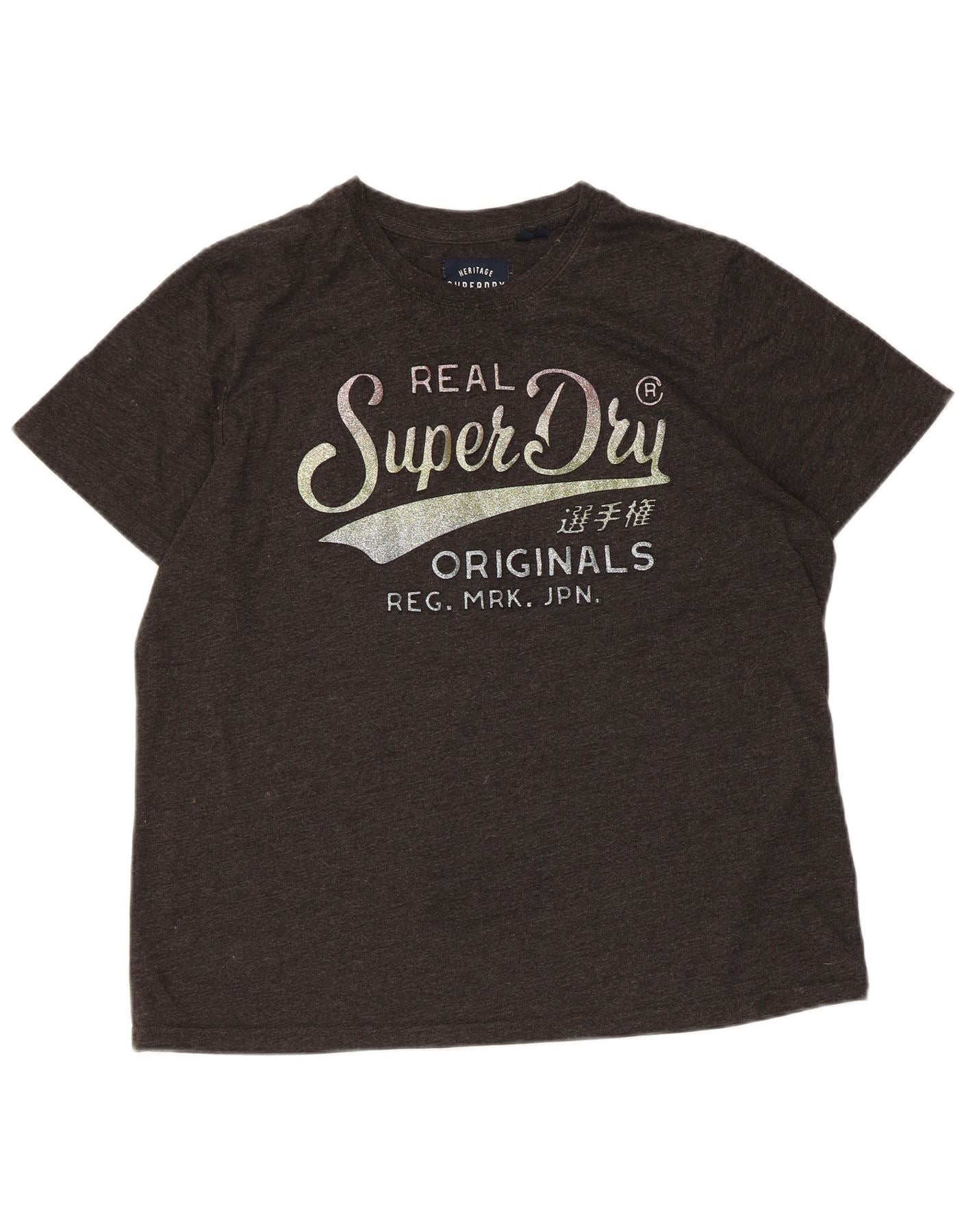 Γυναικείο γραφικό μπλουζάκι SUPERDRY Top UK 16 Large Grey Flecked Cotton