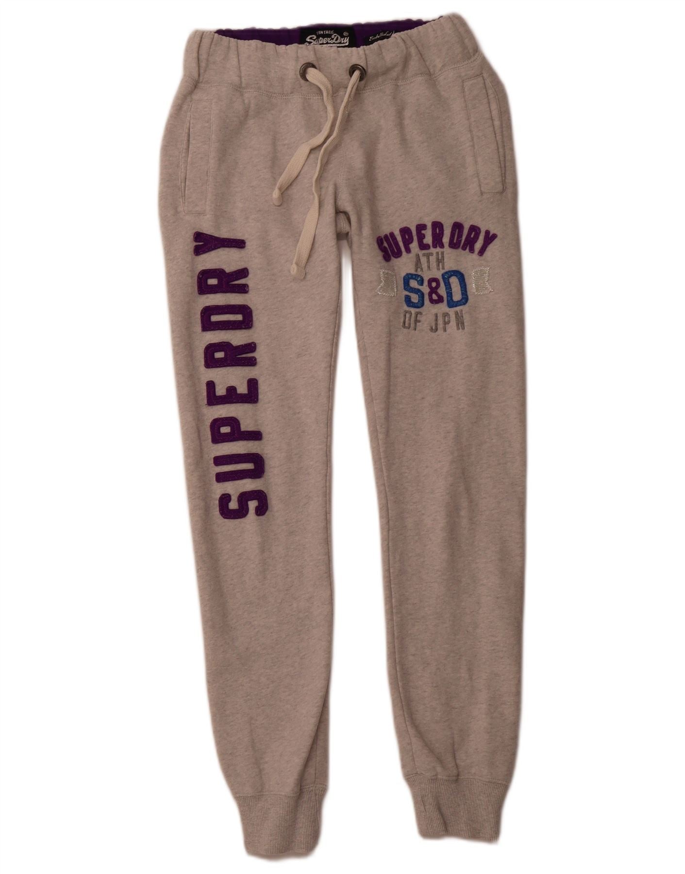 Γυναικεία αθλητική φόρμα SUPERDRY γραφικά παντελόνια Joggers UK 4 XS Γκρι βαμβακερό