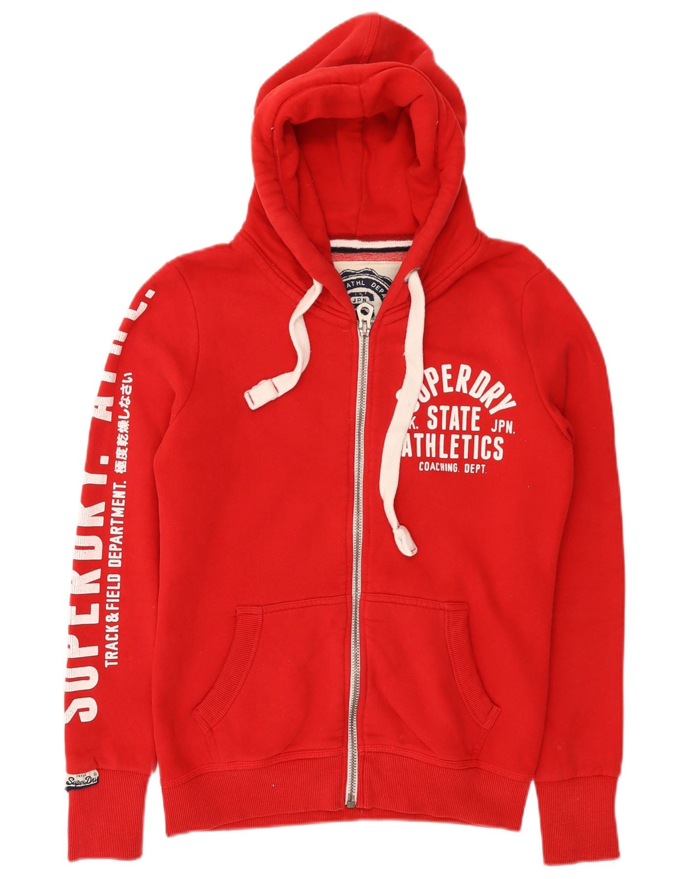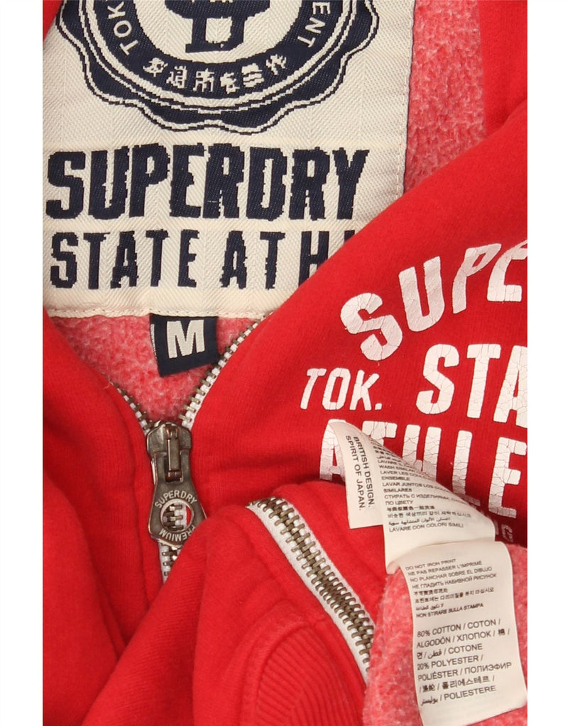 SUPERDRY Womens Graphic Zip Hoodie Sweater UK 14 Medium Red Cotton