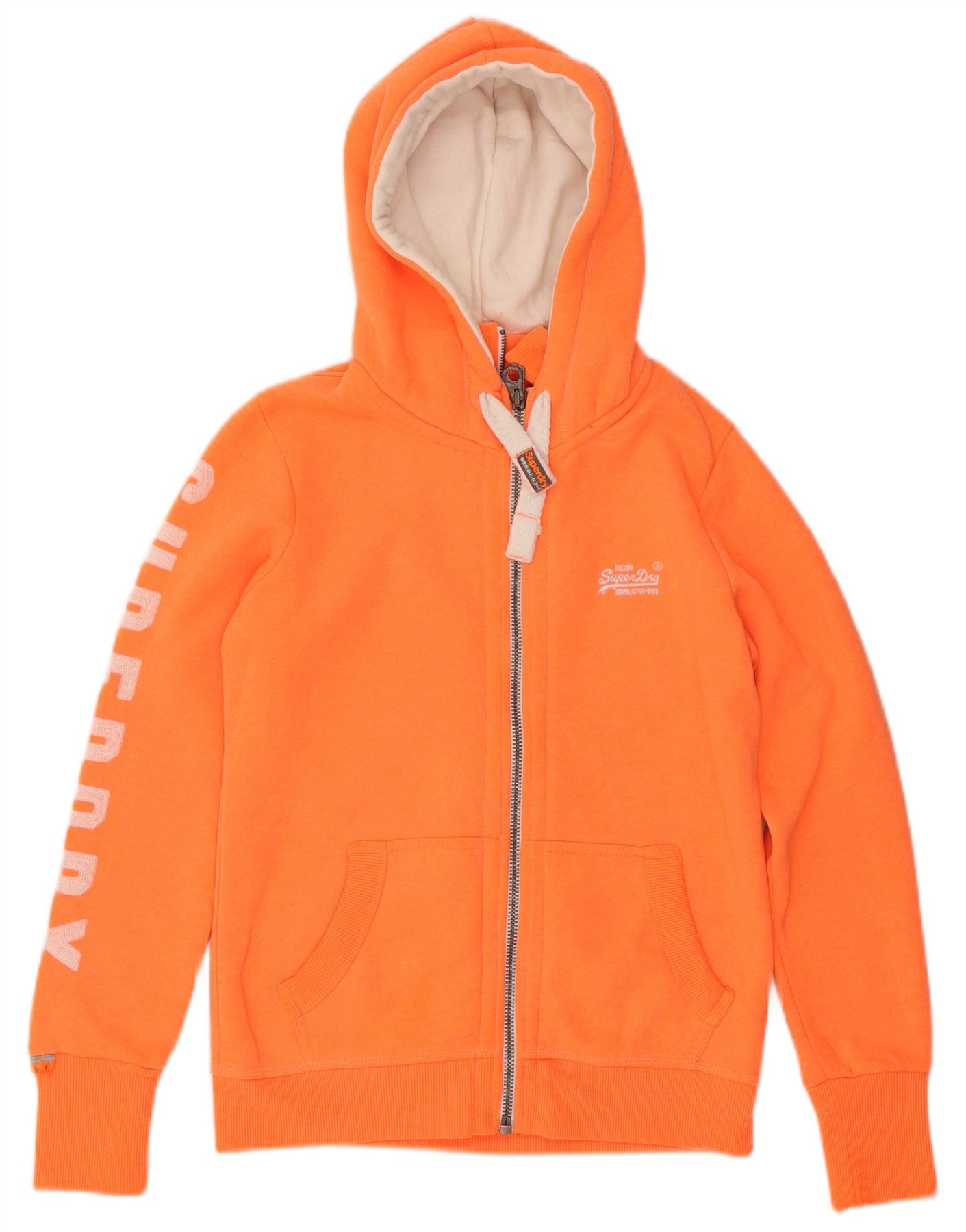 SUPERDRY Womens Graphic Zip Hoodie Sweater UK 16 Large Orange Cotton