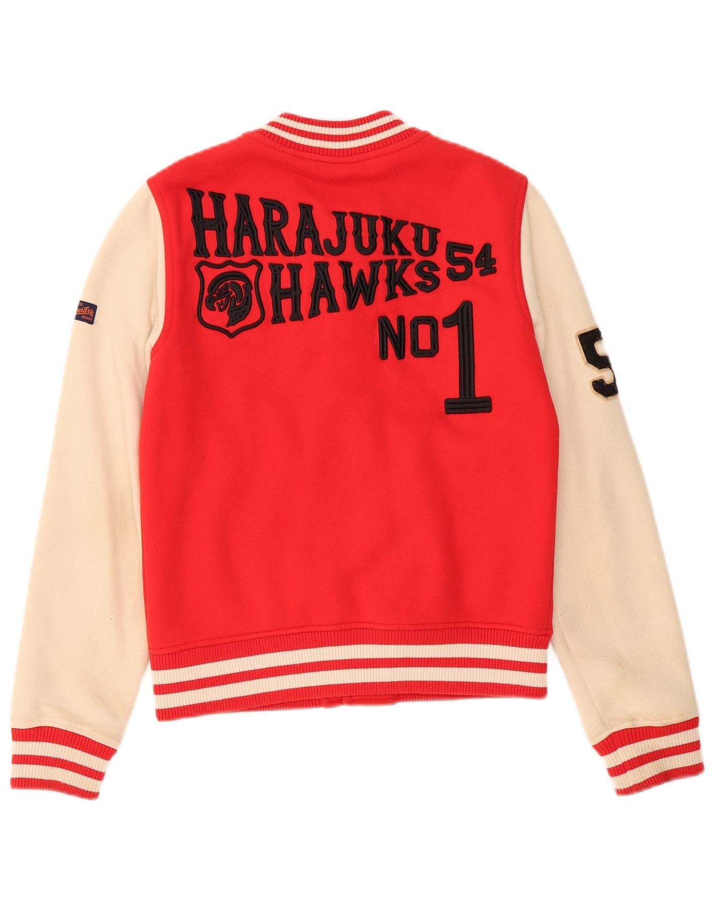 SUPERDRY Womens Hawks Graphic Varsity Jacket UK 10 Small Red Colourblock