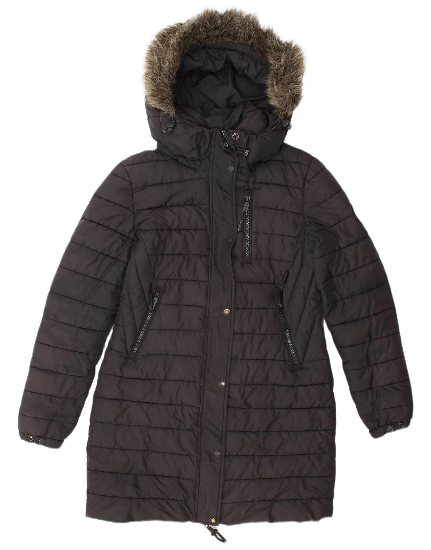 SUPERDRY Womens Hooded Padded Coat UK 10 Small Black Polyester