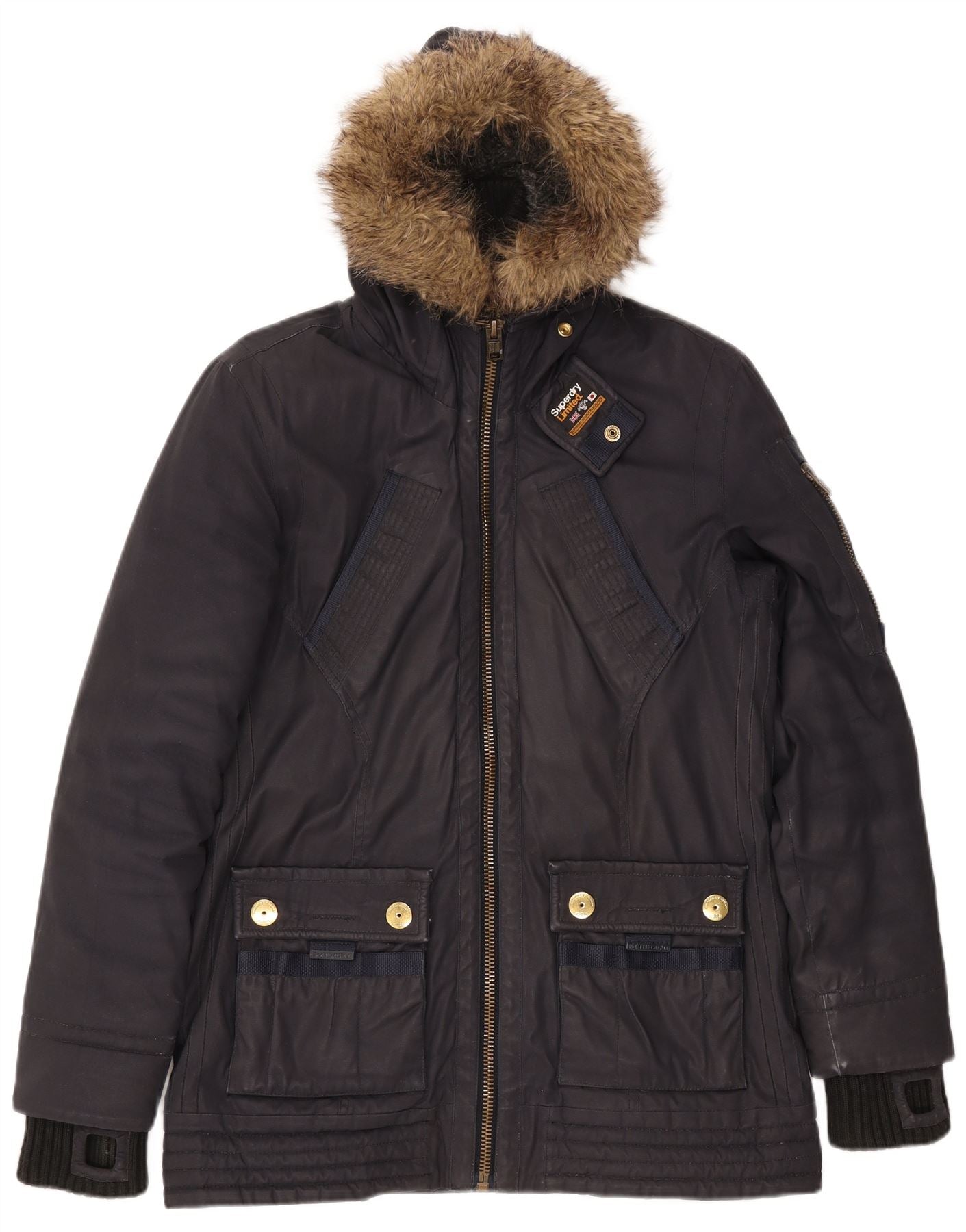 SUPERDRY Γυναικείο μπουφάν Parka με κουκούλα UK 16 Μεγάλο Navy Blue από βαμβάκι