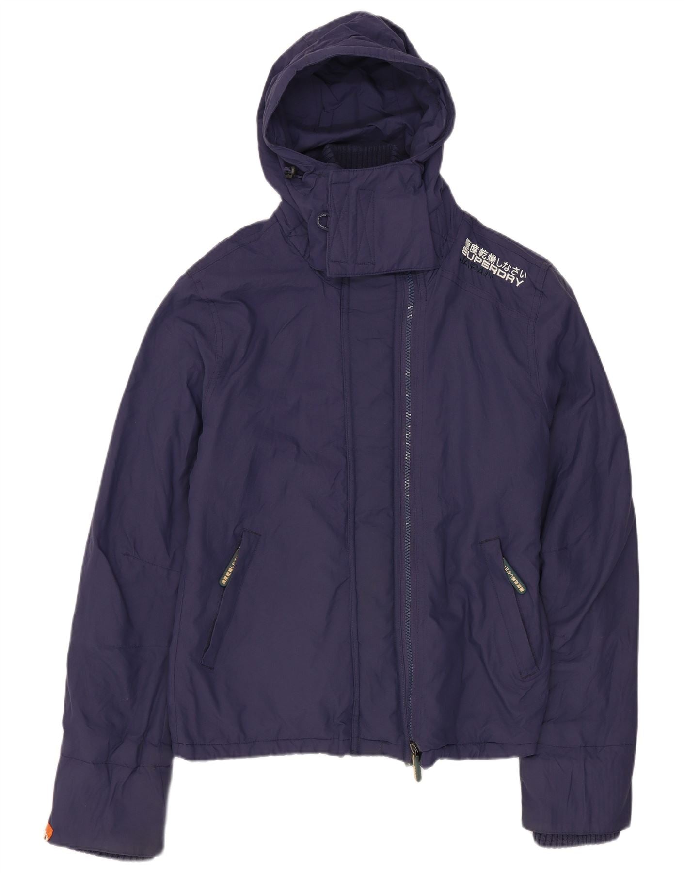 Γυναικείο μπουφάν SUPERDRY με κουκούλα αντιανεμικό UK 14 Medium Navy Blue Nylon