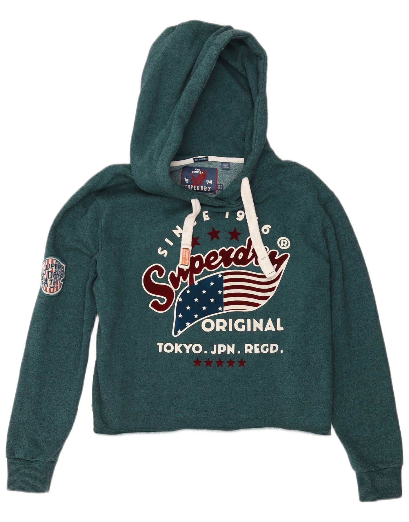 SUPERDRY Γυναικεία υπερμεγέθη Crop Graphic Hoodie Jumper UK 10 Small Green