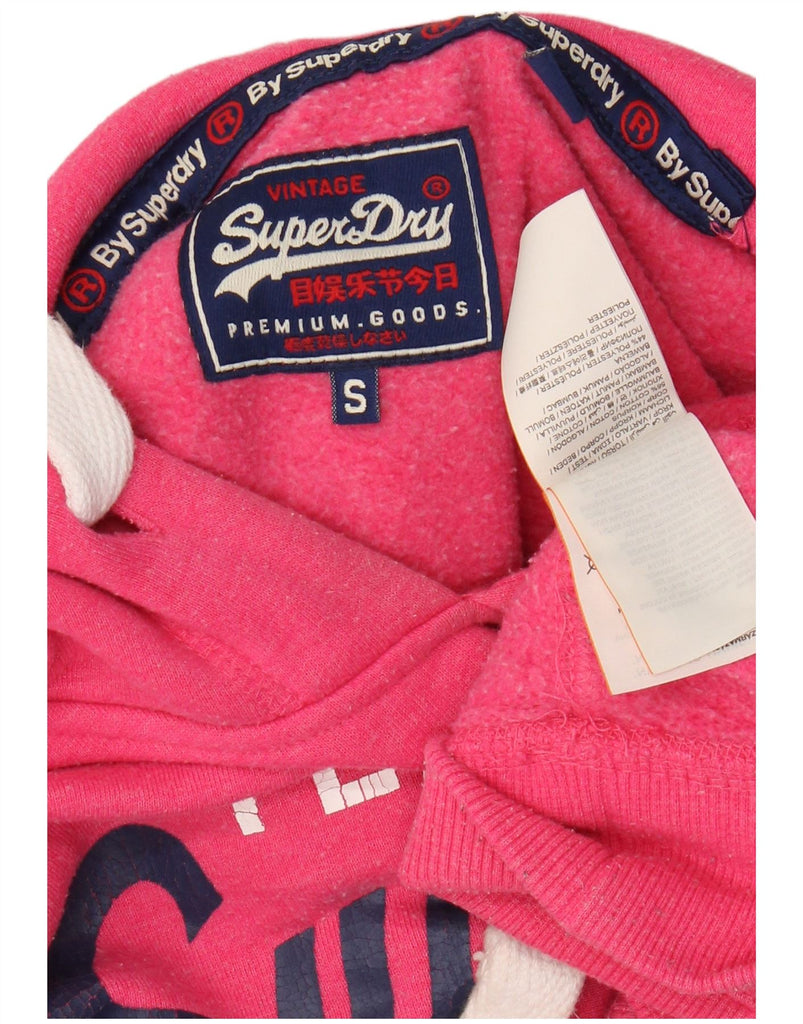 SUPERDRY Womens Oversized Graphic Hoodie Jumper UK 10 Small Pink Cotton