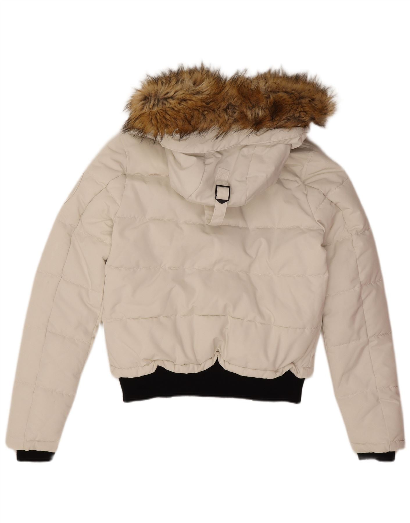 Superdry γυναικείο μπουφάν με κουκούλα μεγάλου μεγέθους UK 10 μικρό λευκό πολυεστέρα