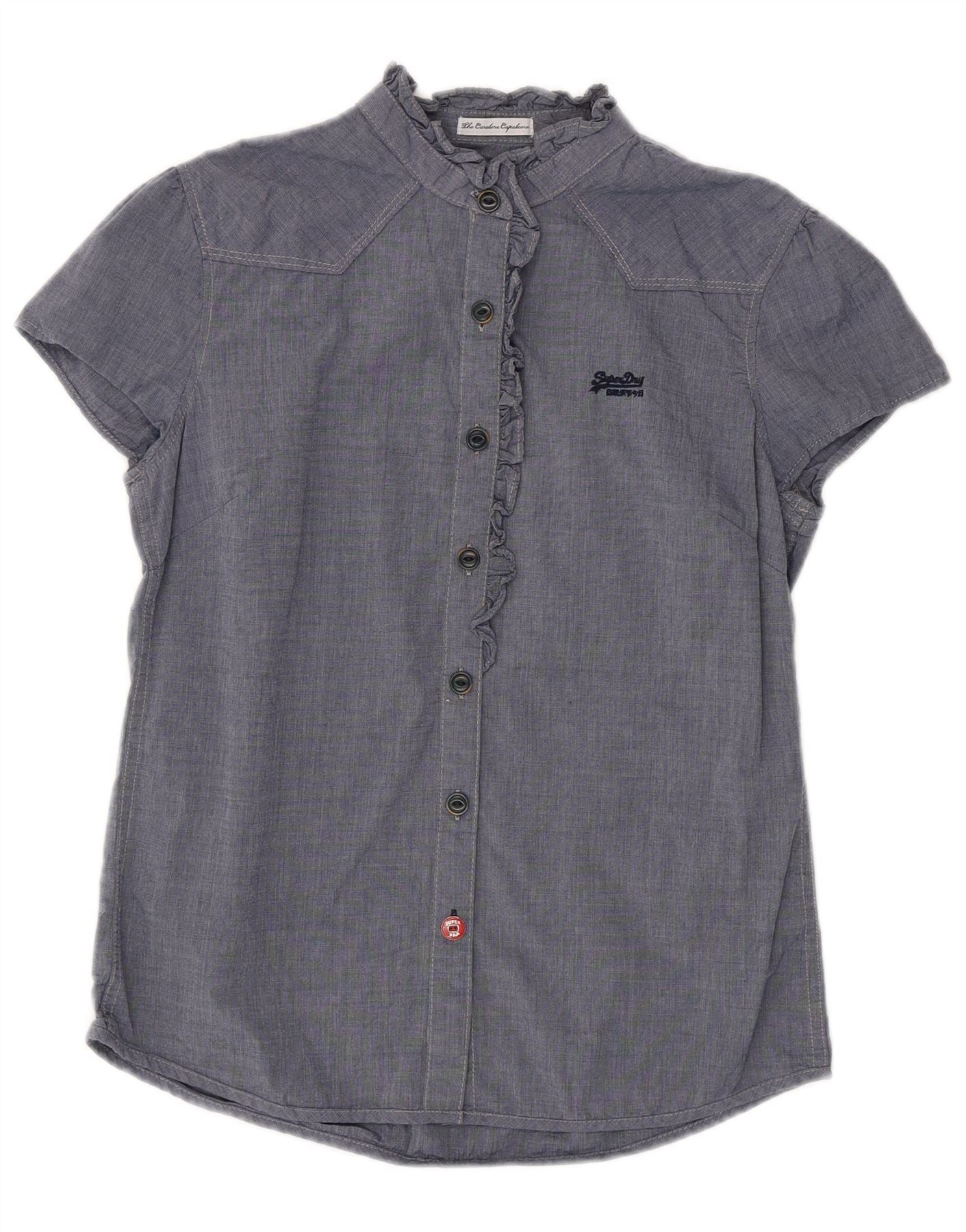 SUPERDRY Γυναικείο πουκάμισο με βολάν μπλούζα UK 12 Medium Navy Blue