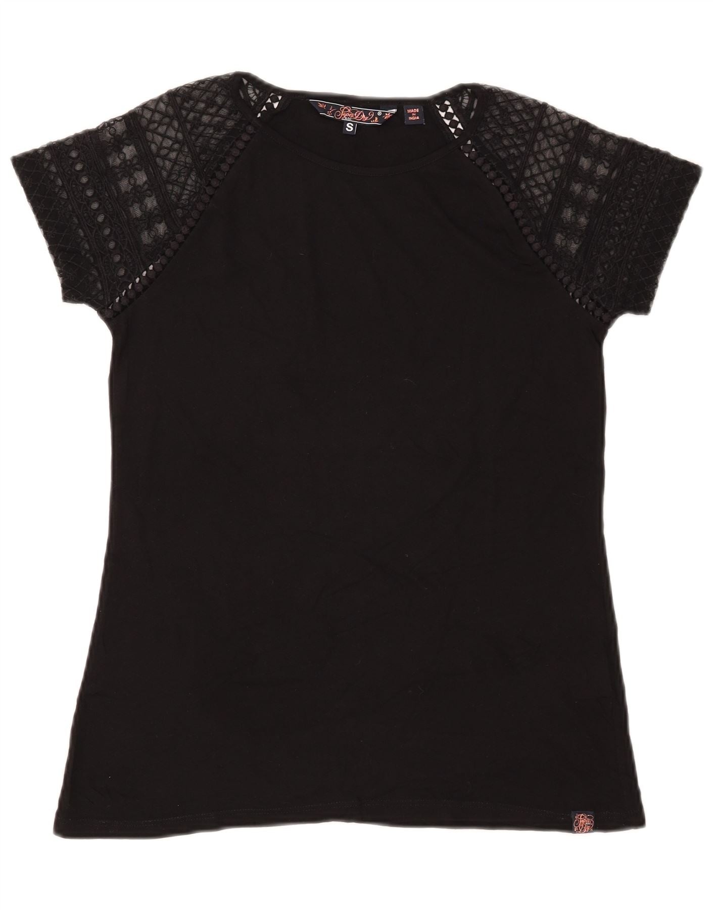 Γυναικείο T-Shirt SUPERDRY Top UK 10 Small μαύρο βαμβακερό