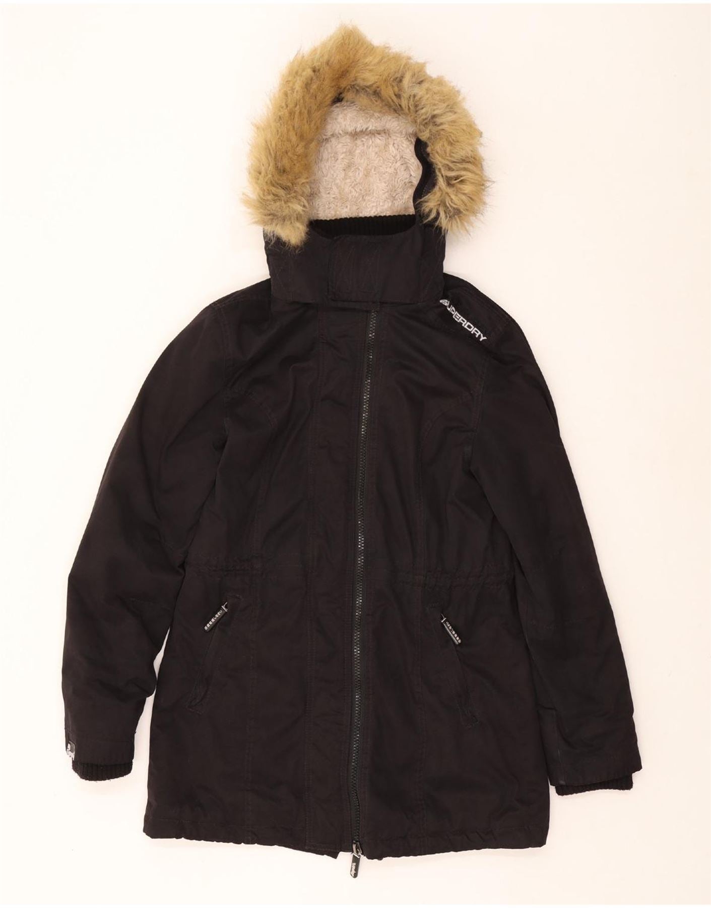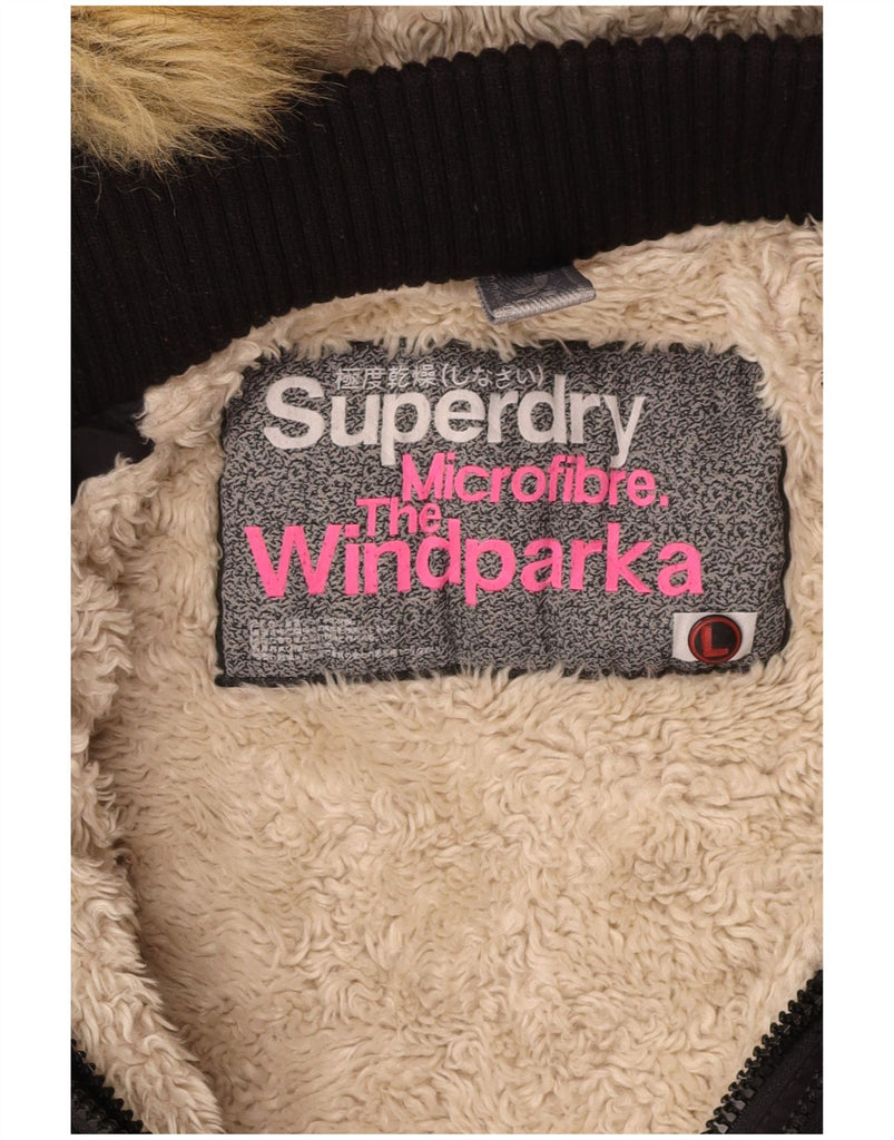 SUPERDRY Womens The windparka Graphic Parka Jacket UK 16 Large Black