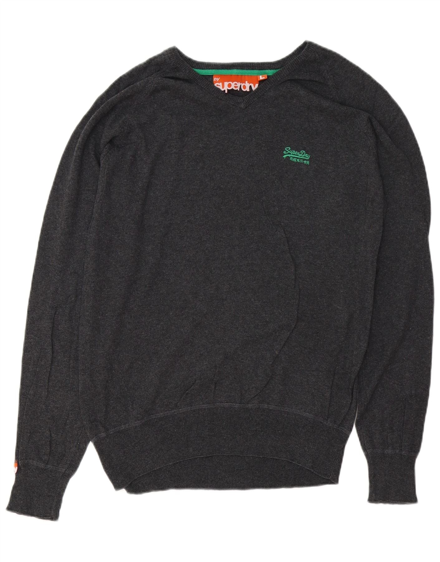 Γυναικείο πουλόβερ με λαιμόκοψη SUPERDRY UK 16 μεγάλο γκρι βαμβακερό