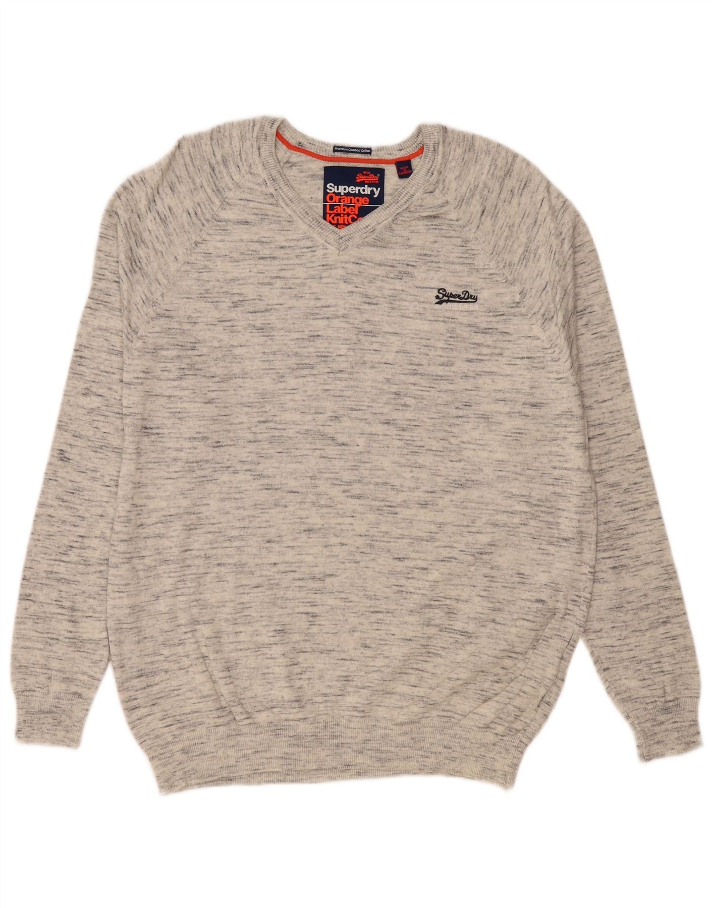 SUPERDRY Γυναικείο πουλόβερ με λαιμόκοψη V UK 18 XL Γκρι βαμβακερό