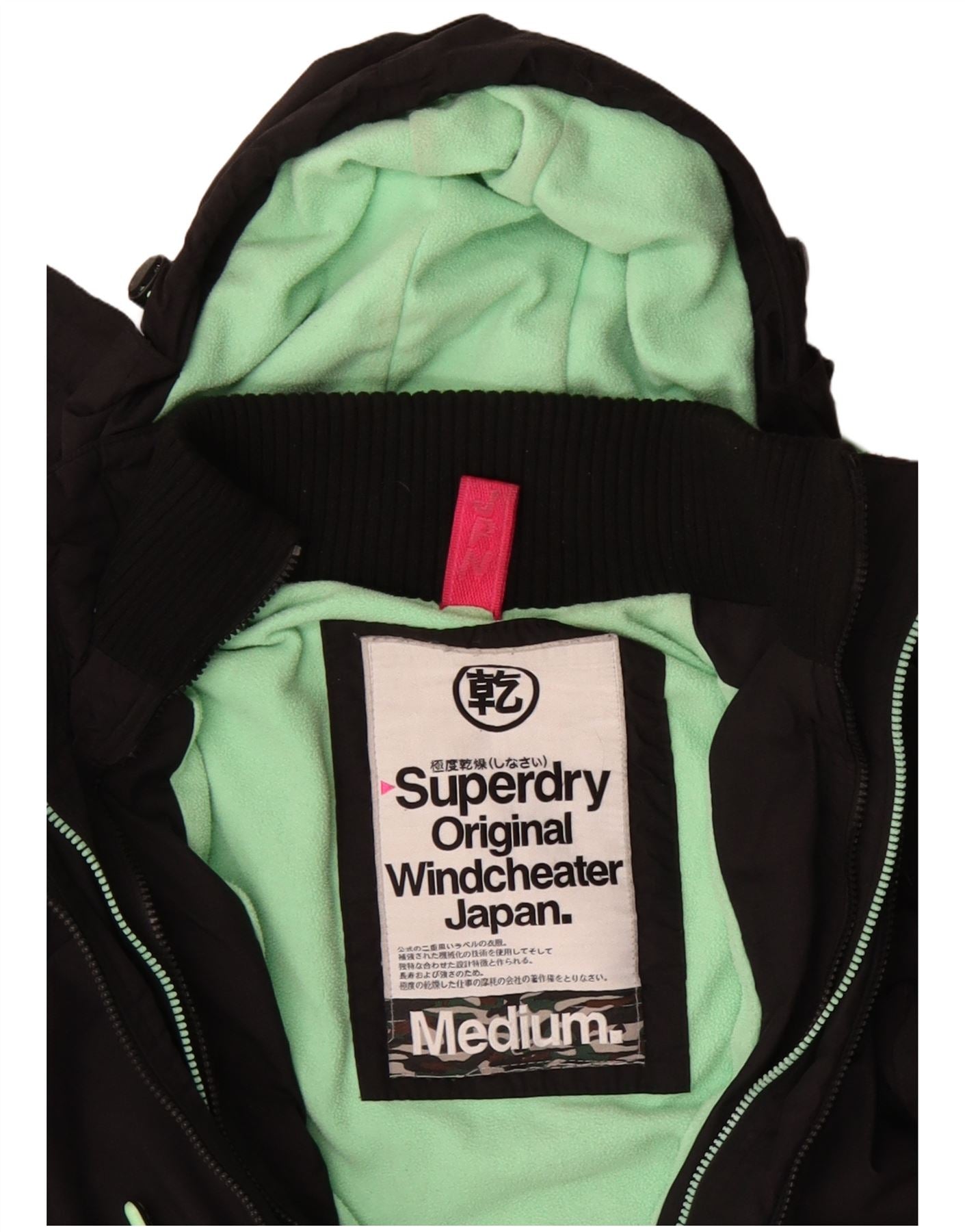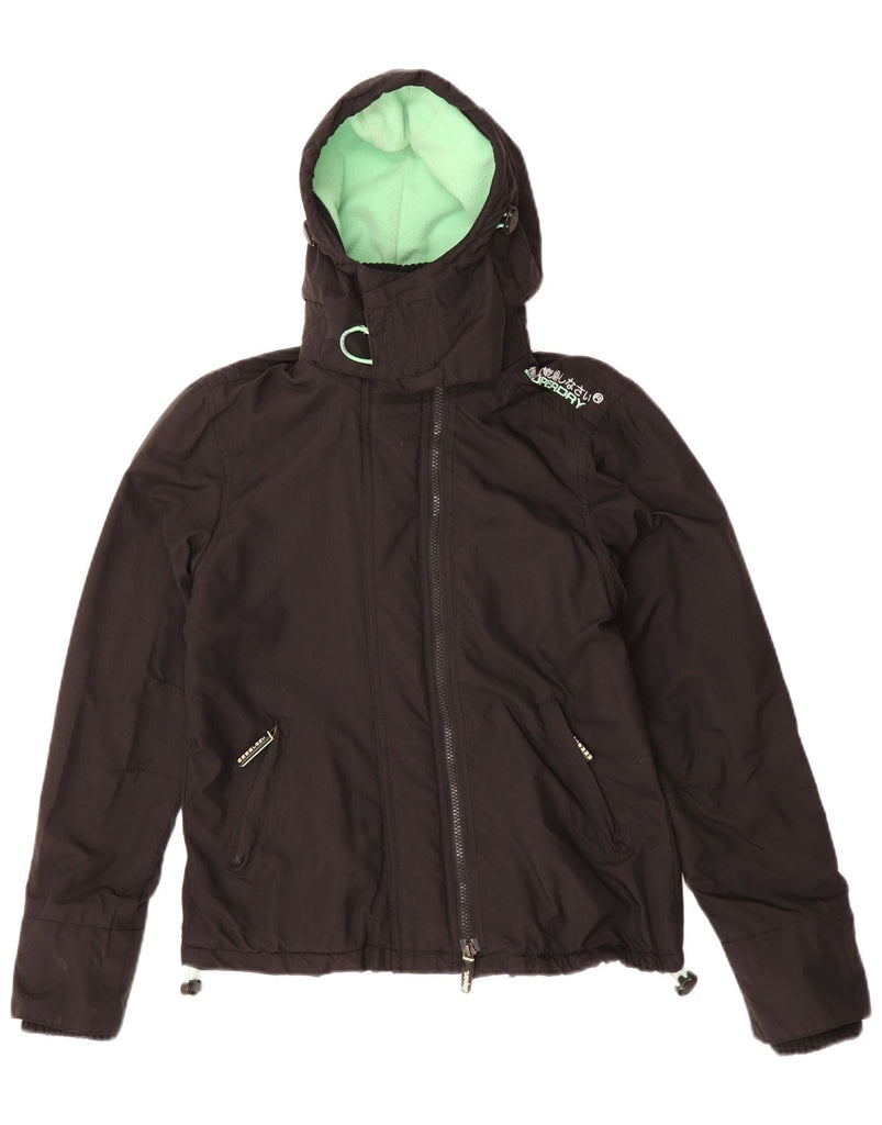 SUPERDRY Womens Windcheater Hooded Windbreaker Jacket UK 14 Medium Black