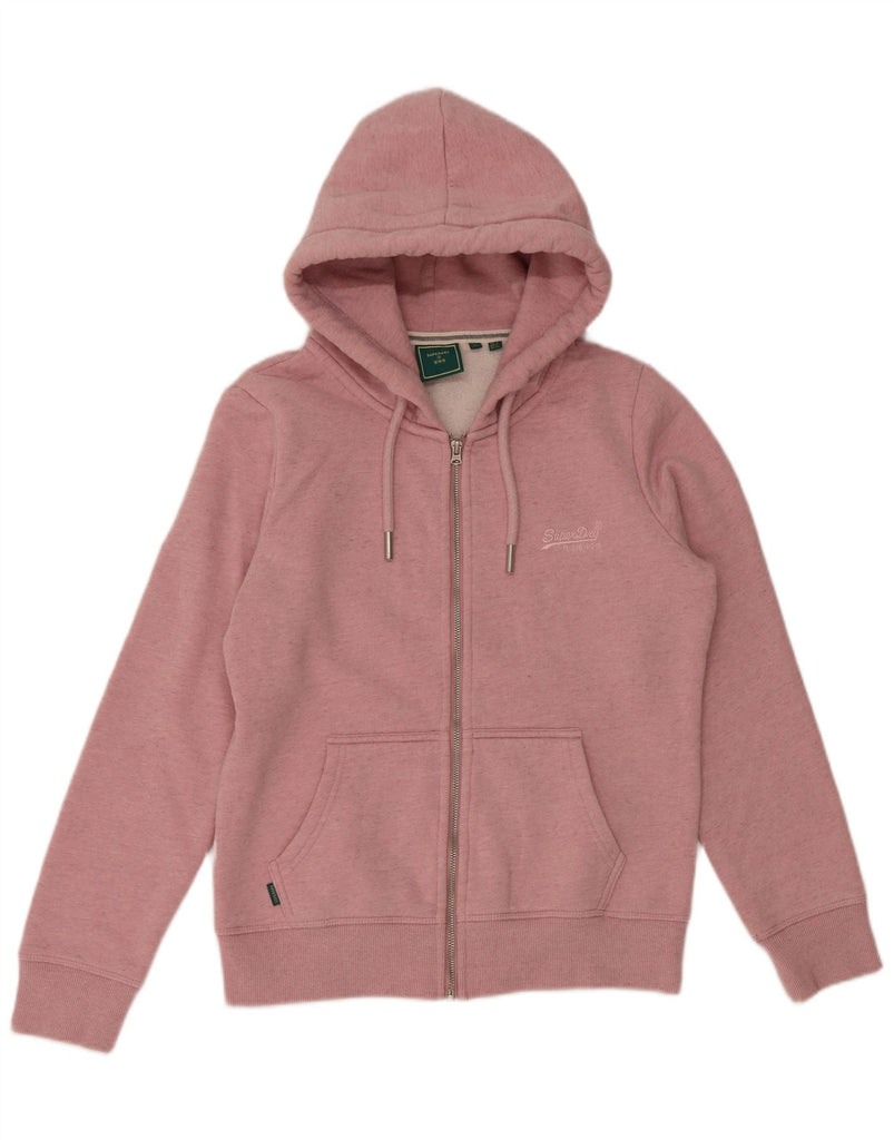 SUPERDRY Γυναικείο πουλόβερ με κουκούλα με φερμουάρ UK 12 μέτριο ροζ βαμβακερό