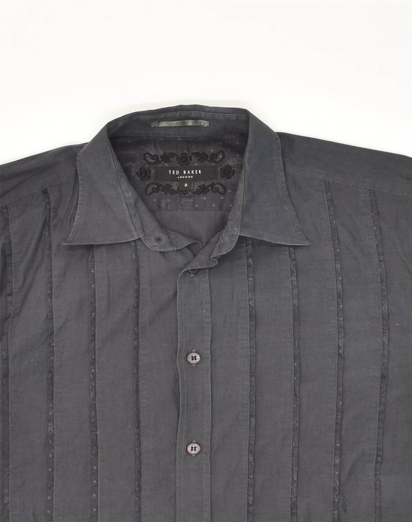 TED BAKER Ανδρικό επίσημο πουκάμισο νούμερο 3 Μεσαίο γκρι ριγέ βαμβακερό