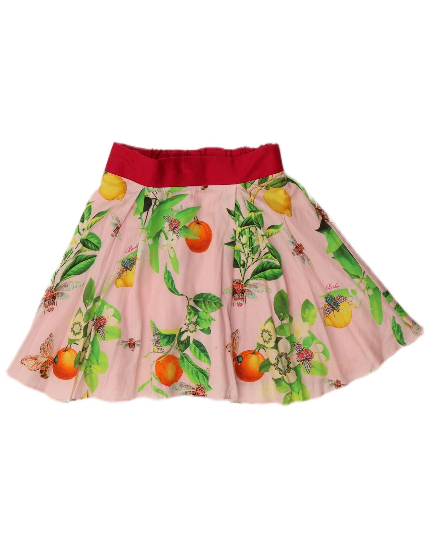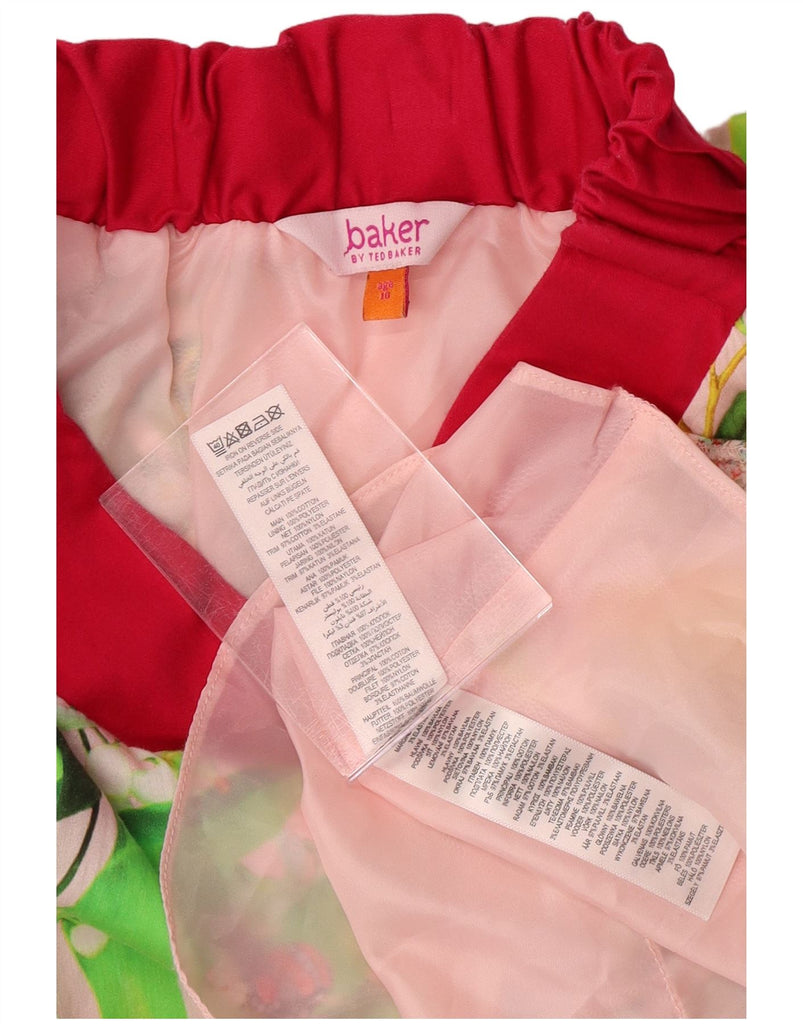 TED BAKER Girls Graphic A-Line Skirt 9-10 Years W24 Pink Floral Cotton