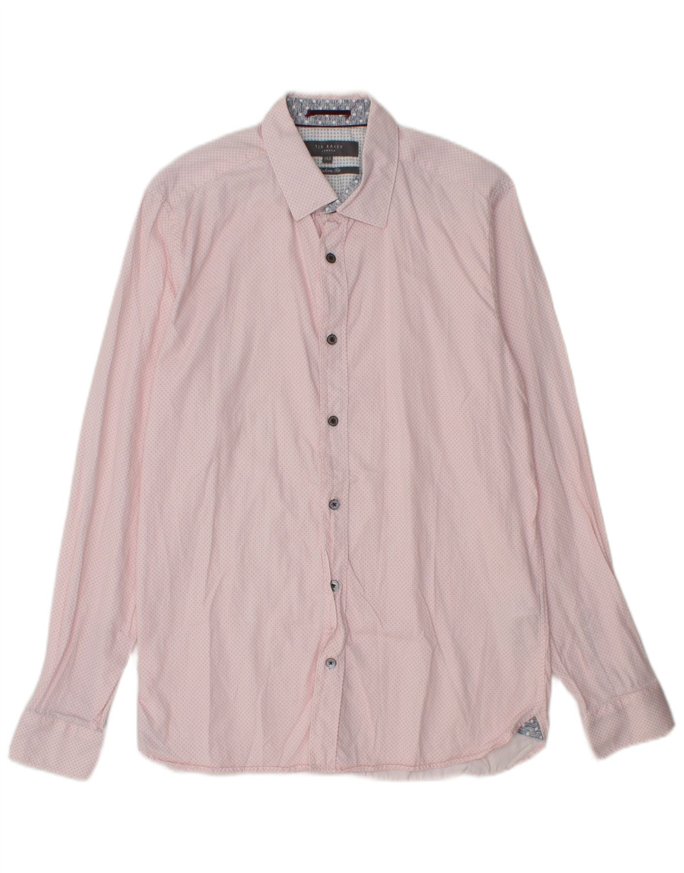 TED BAKER Mens Modern Fit Shirt Size 15 5 Medium Pink Spotted Lyocell