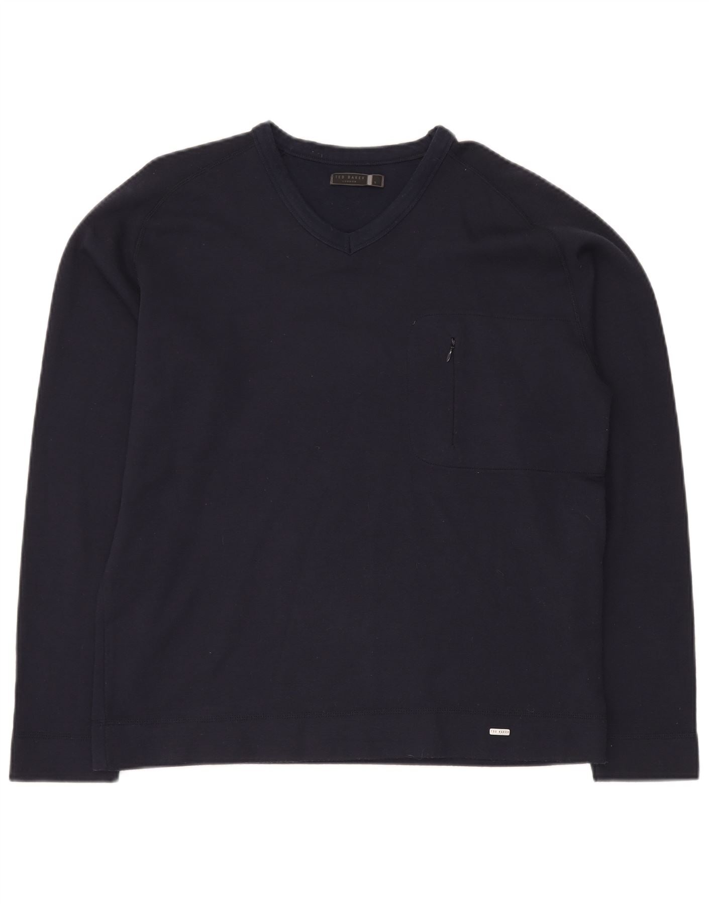 TED BAKER Ανδρικό πουλόβερ με λαιμόκοψη με λαιμόκοψη, μέγεθος 5 XL, μπλε βαμβακερό