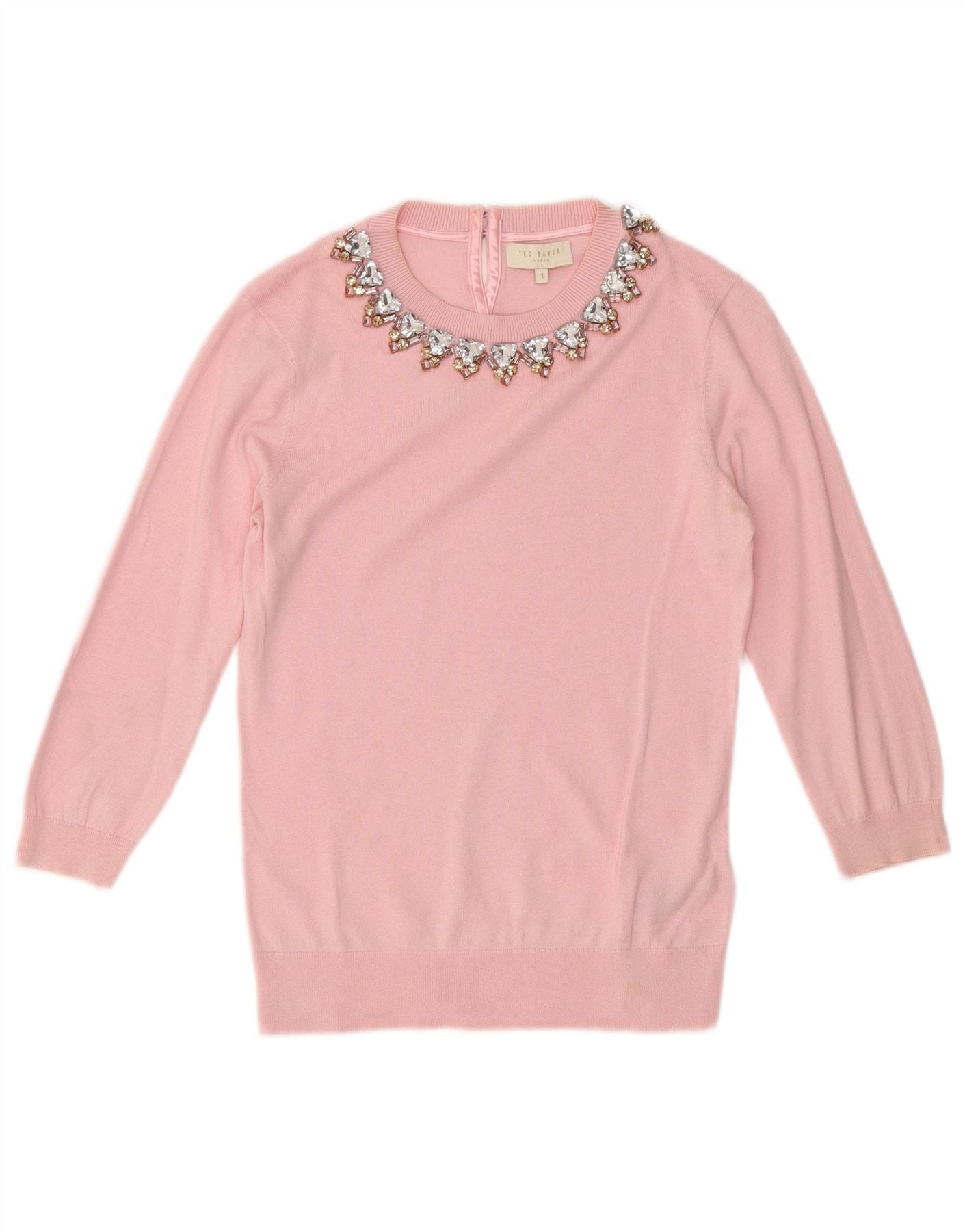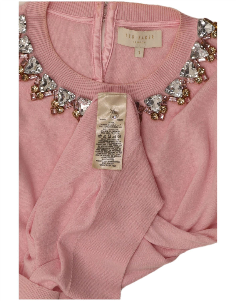 TED BAKER Womens 3/4 Sleeve Crew Neck Jumper Sweater Size 1 XS Pink Cotton