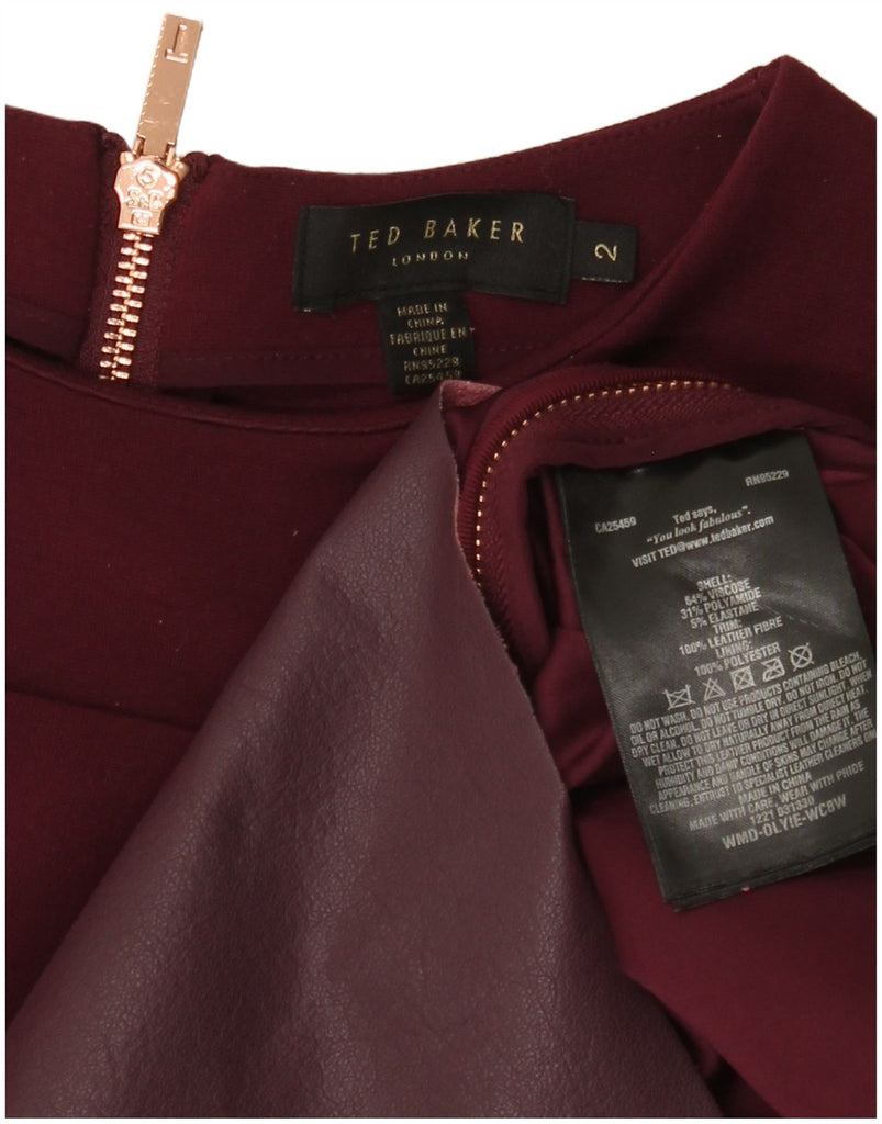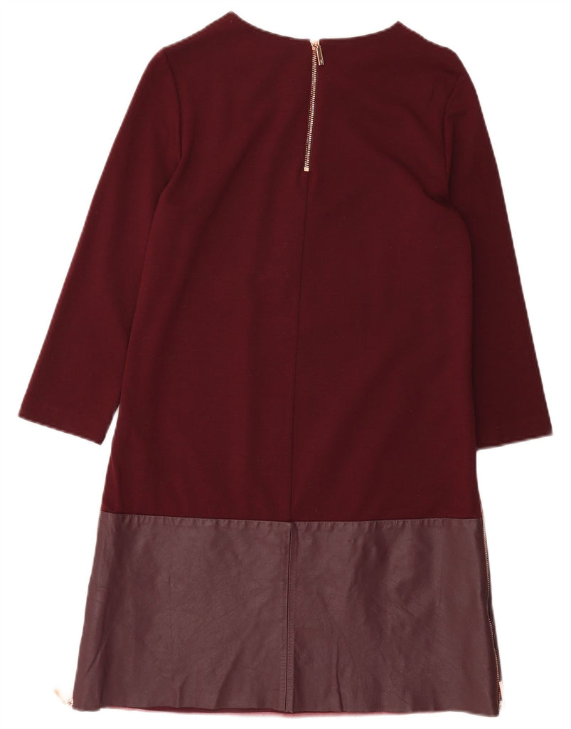 TED BAKER Womens 3/4 Sleeve Shift Dress Size 2 Small Burgundy Viscose