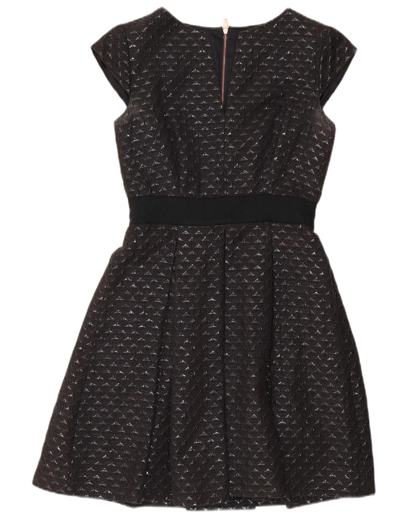 TED BAKER Womens A-Line Dress Size 2 Small Black Geometric Cotton