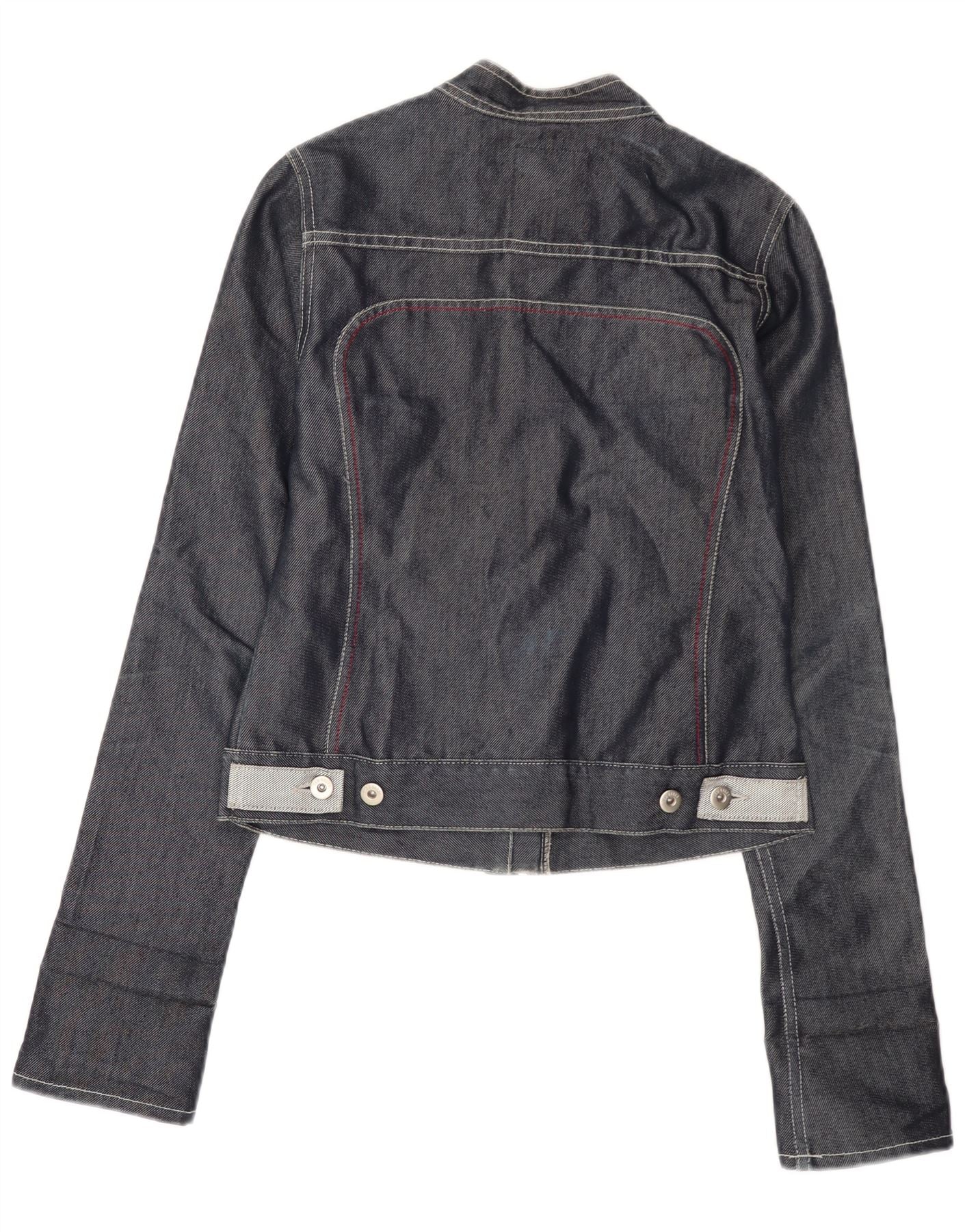 TED BAKER Γυναικείο Crop Τζιν Μπουφάν Μέγεθος 2 Μικρό Γκρι Βαμβακερό